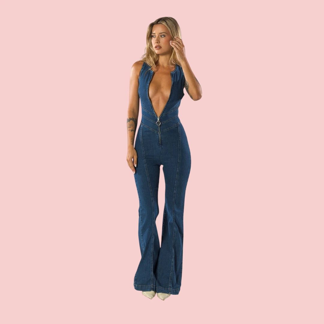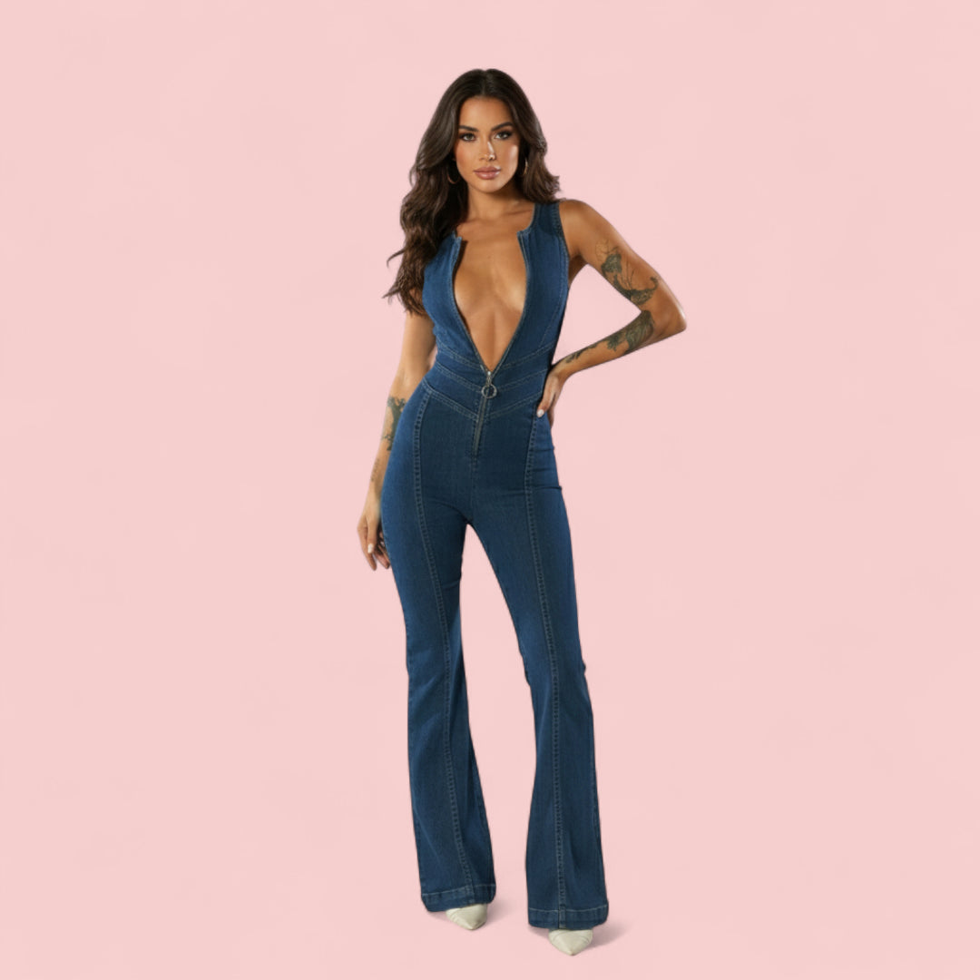 Amaya | Denim Jumpsuit met Hartvormige Uitsnede, Trendy en Comfortabele Outfit voor Vrouwen