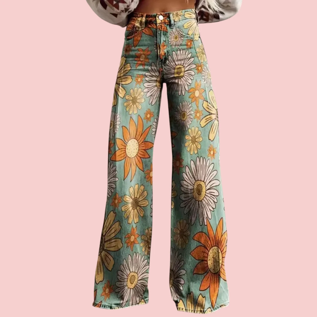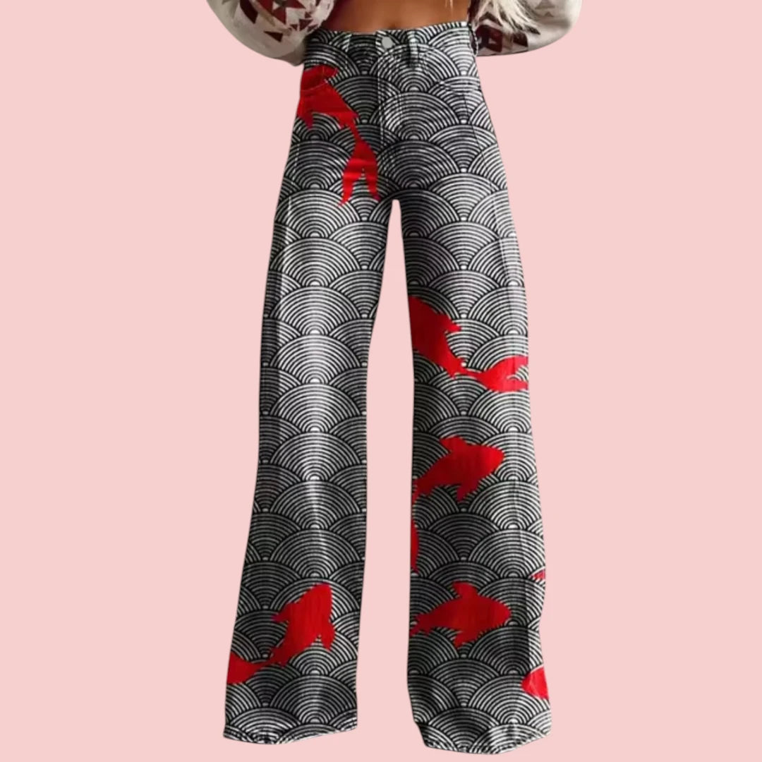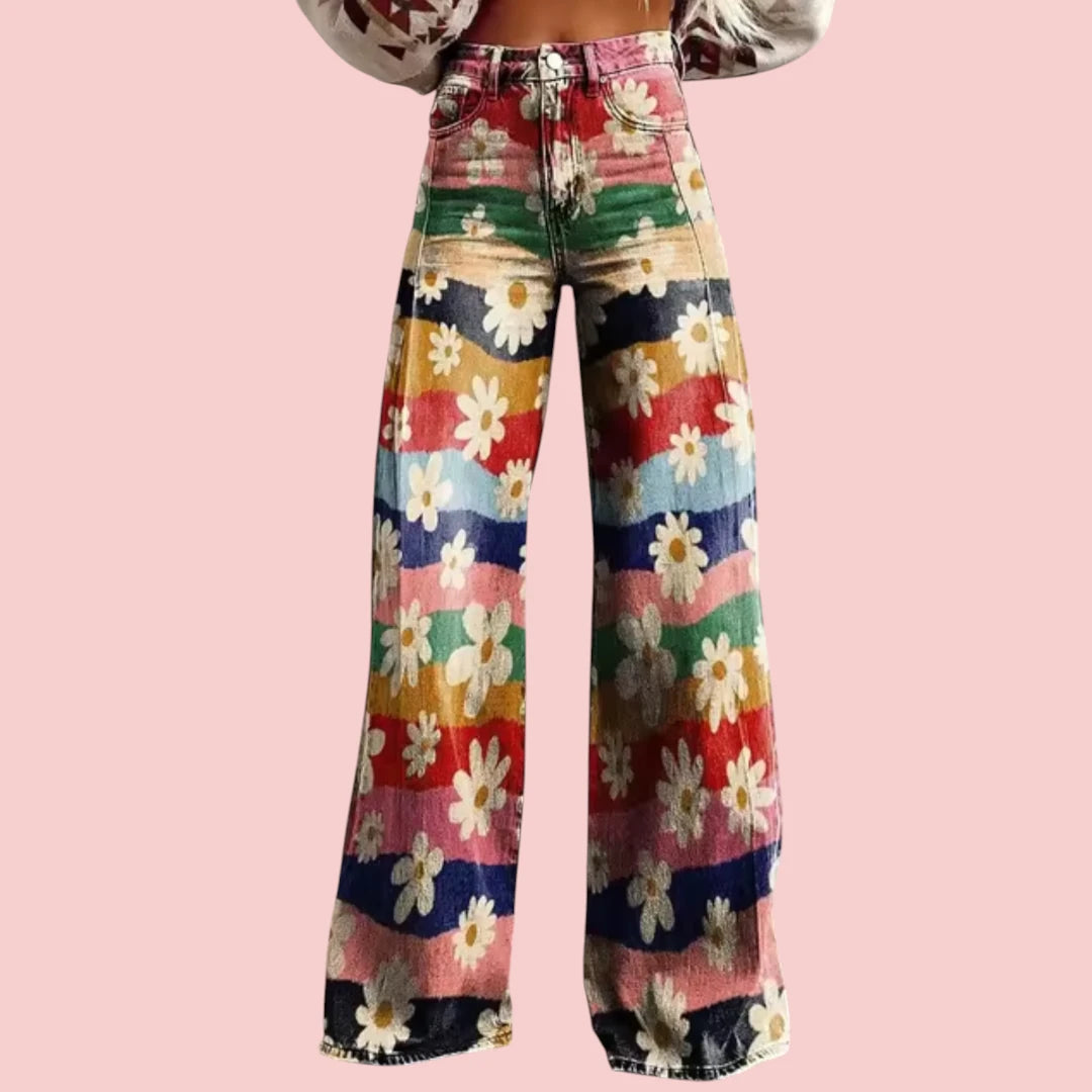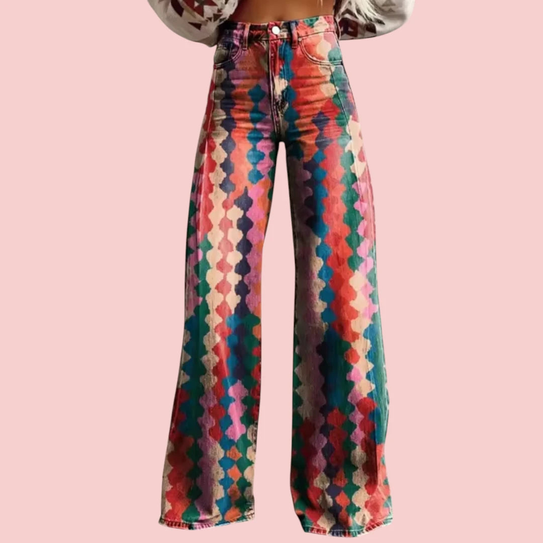 Aurora | Broek van Lichte Stof met Wijde Pijpen en Kleurrijke All-over Print voor Vrouwen
