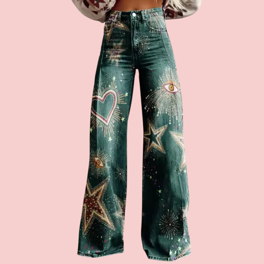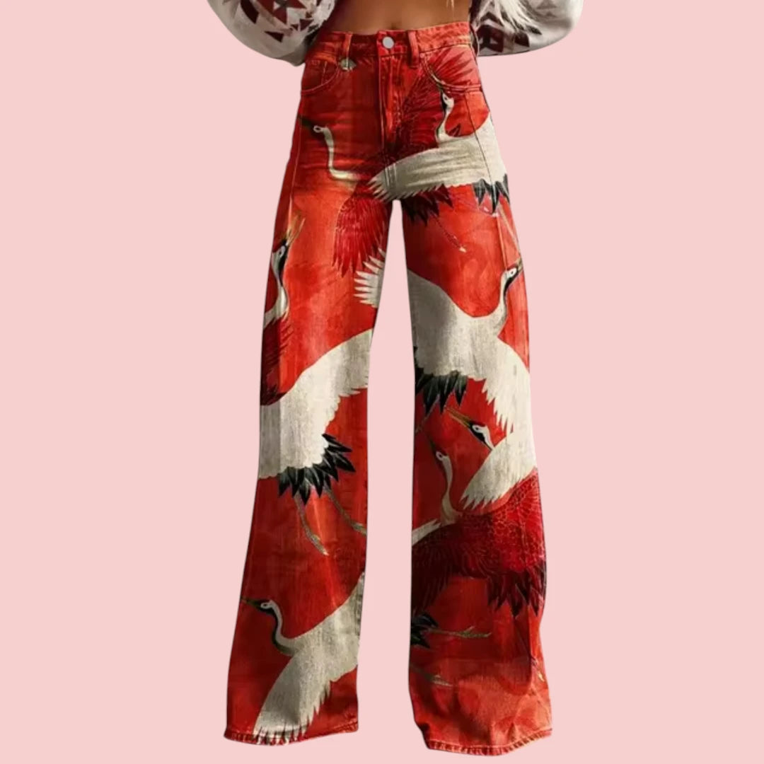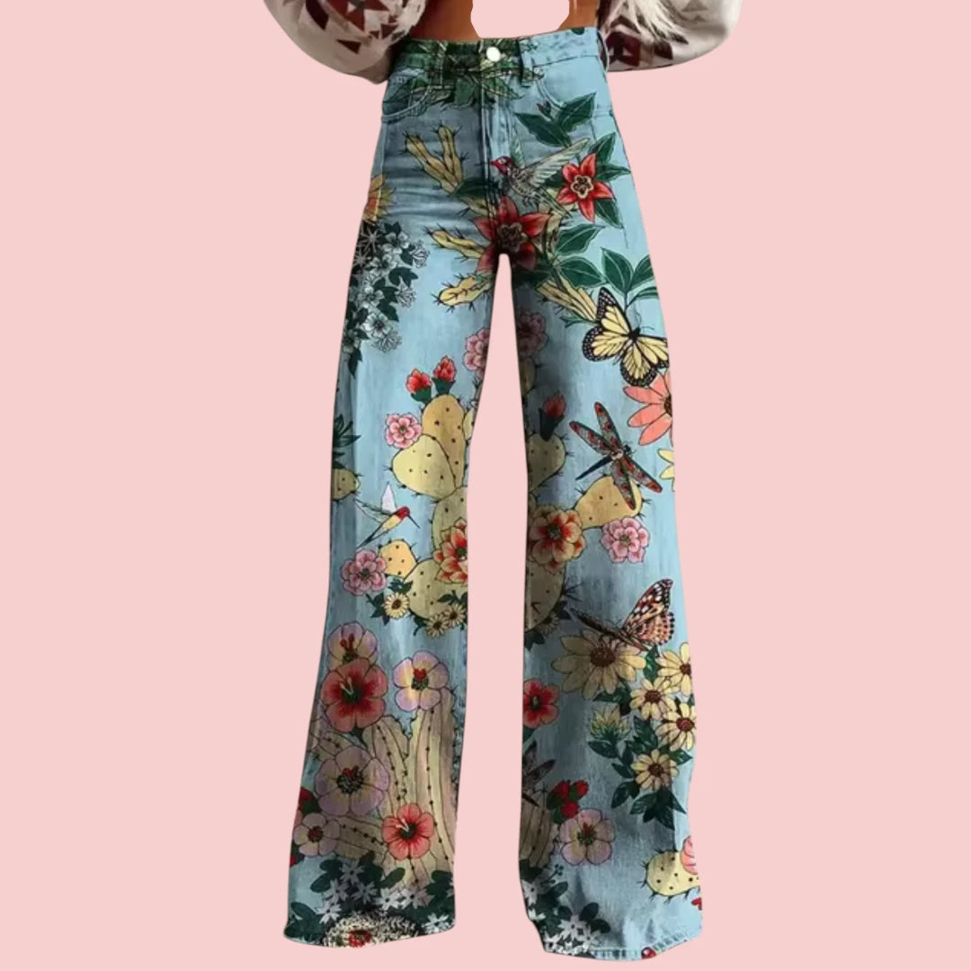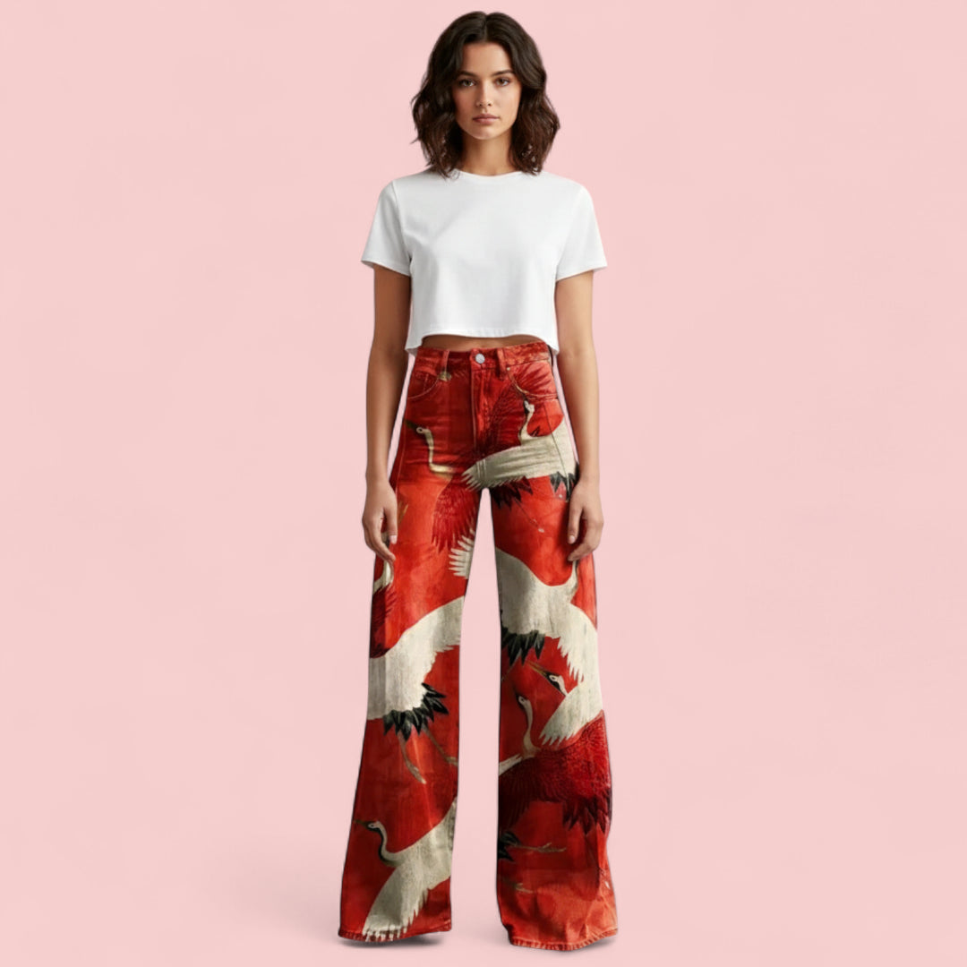 Aurora | Broek van Lichte Stof met Wijde Pijpen en Kleurrijke All-over Print voor Vrouwen