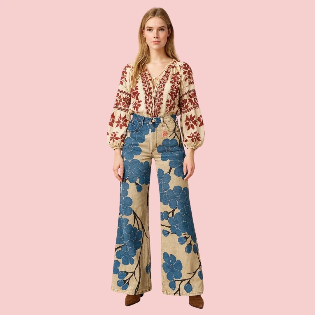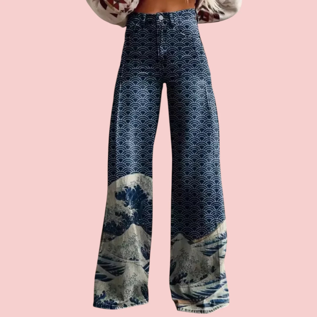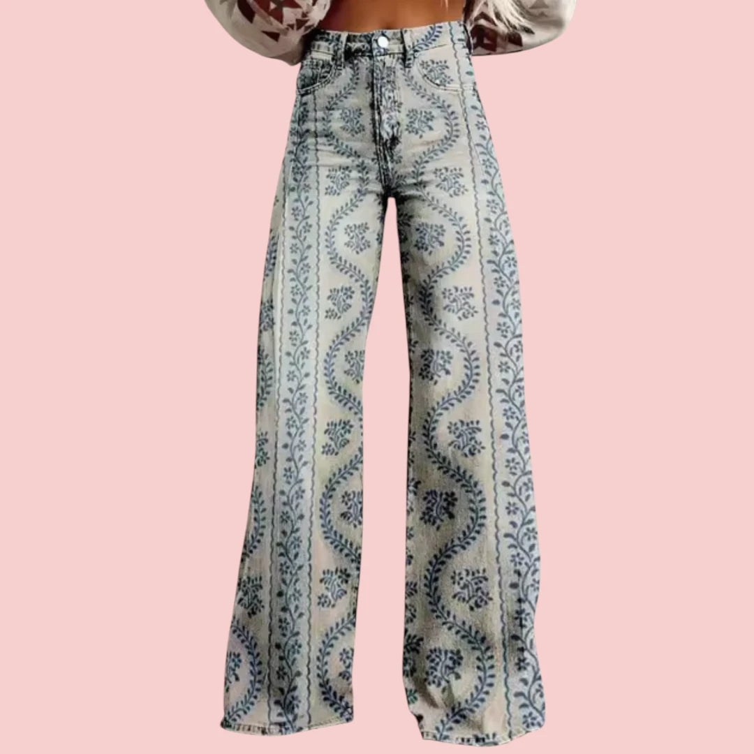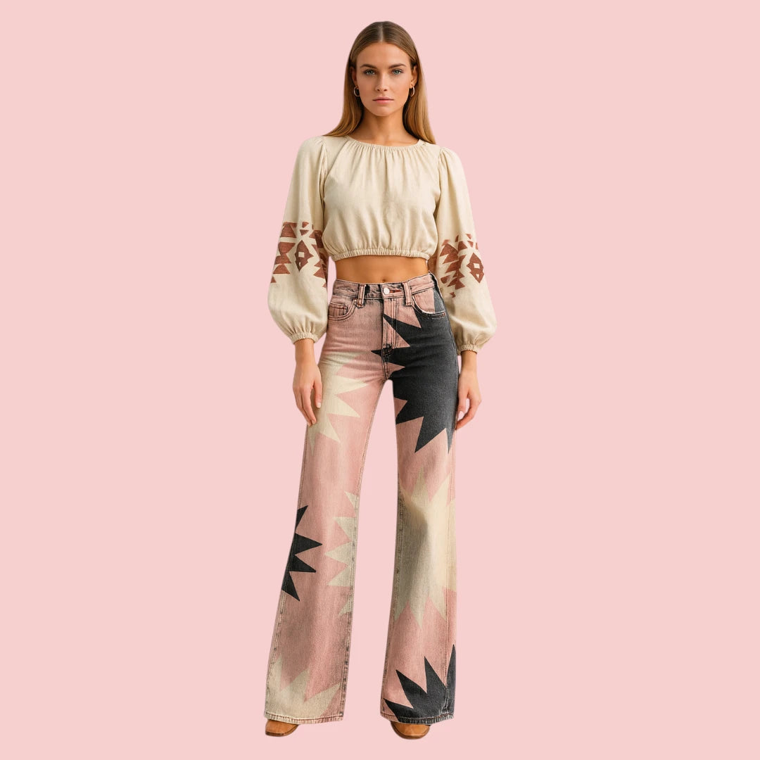 Aurora | Broek van Lichte Stof met Wijde Pijpen en Kleurrijke All-over Print voor Vrouwen