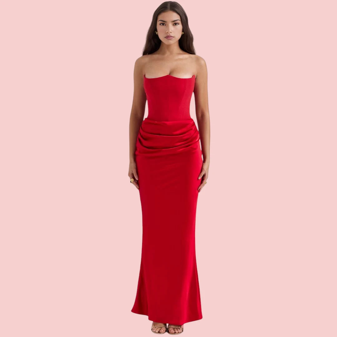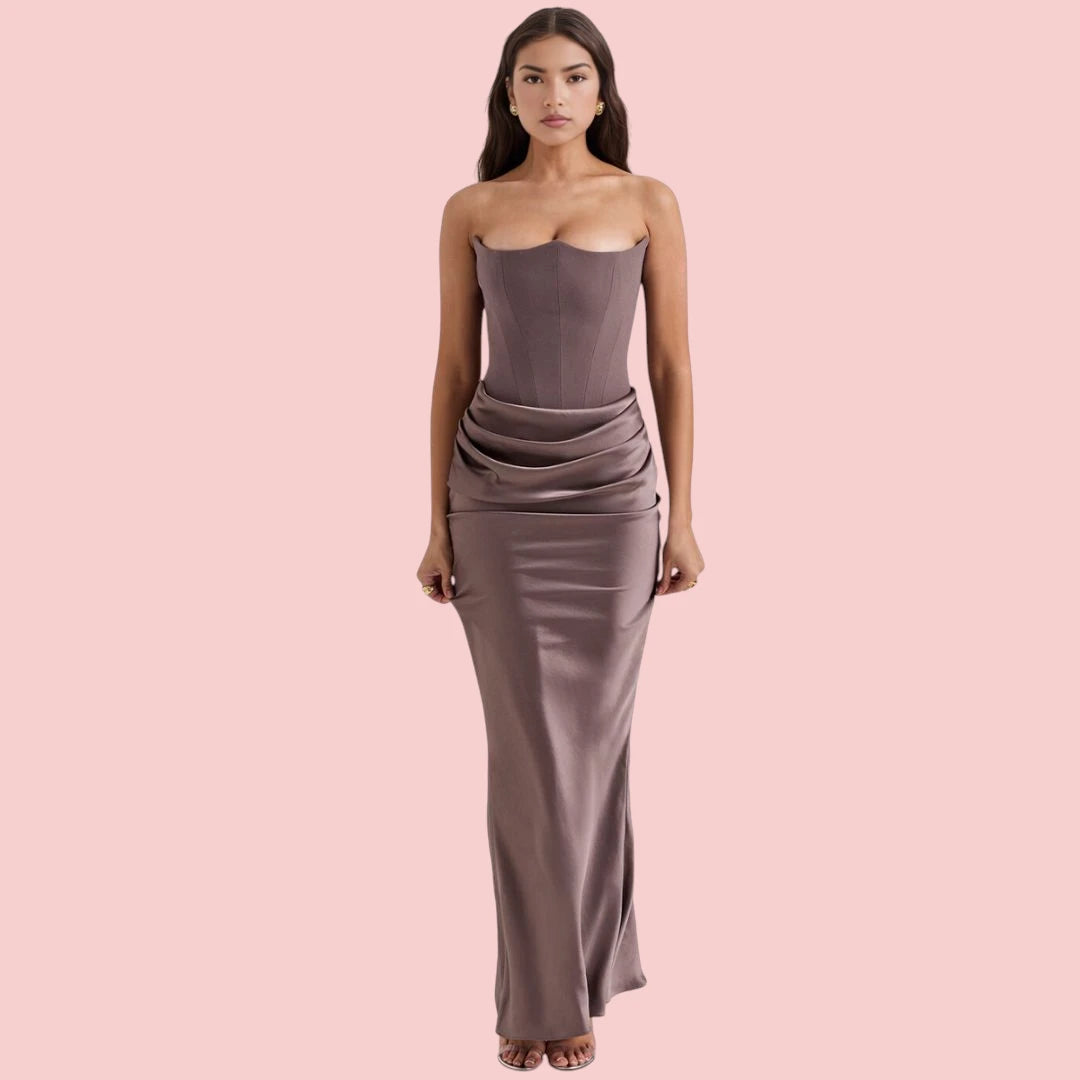 Aria | Strapless Satijnen Corset Maxi Jurk voor Dames