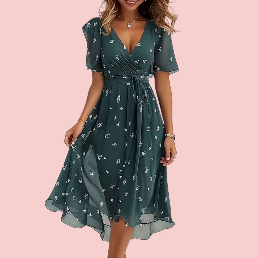 Amara | Midi Jurk van Chiffon met Stijlvolle Bloemenprint, Modieuze en Comfortabele Jurk voor Vrouwen
