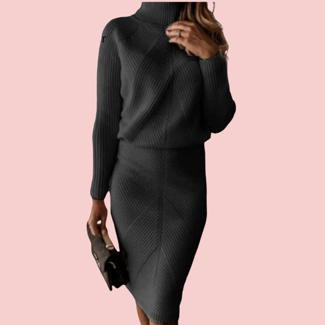 Emily | Gebreide Set Met Coltrui En Aangesloten Rok Voor Dames