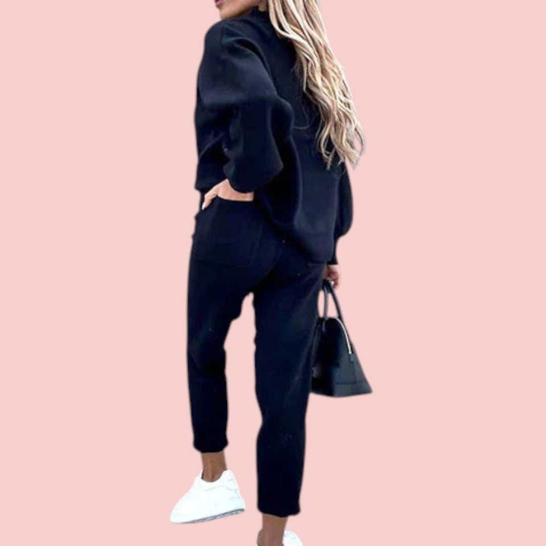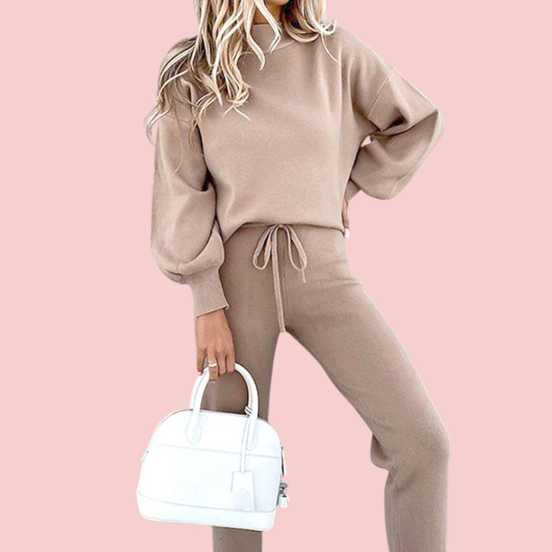 Emily | Two Piece Knit Set with High Neck Sweater and Drawstring Pants for Women