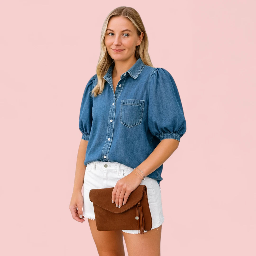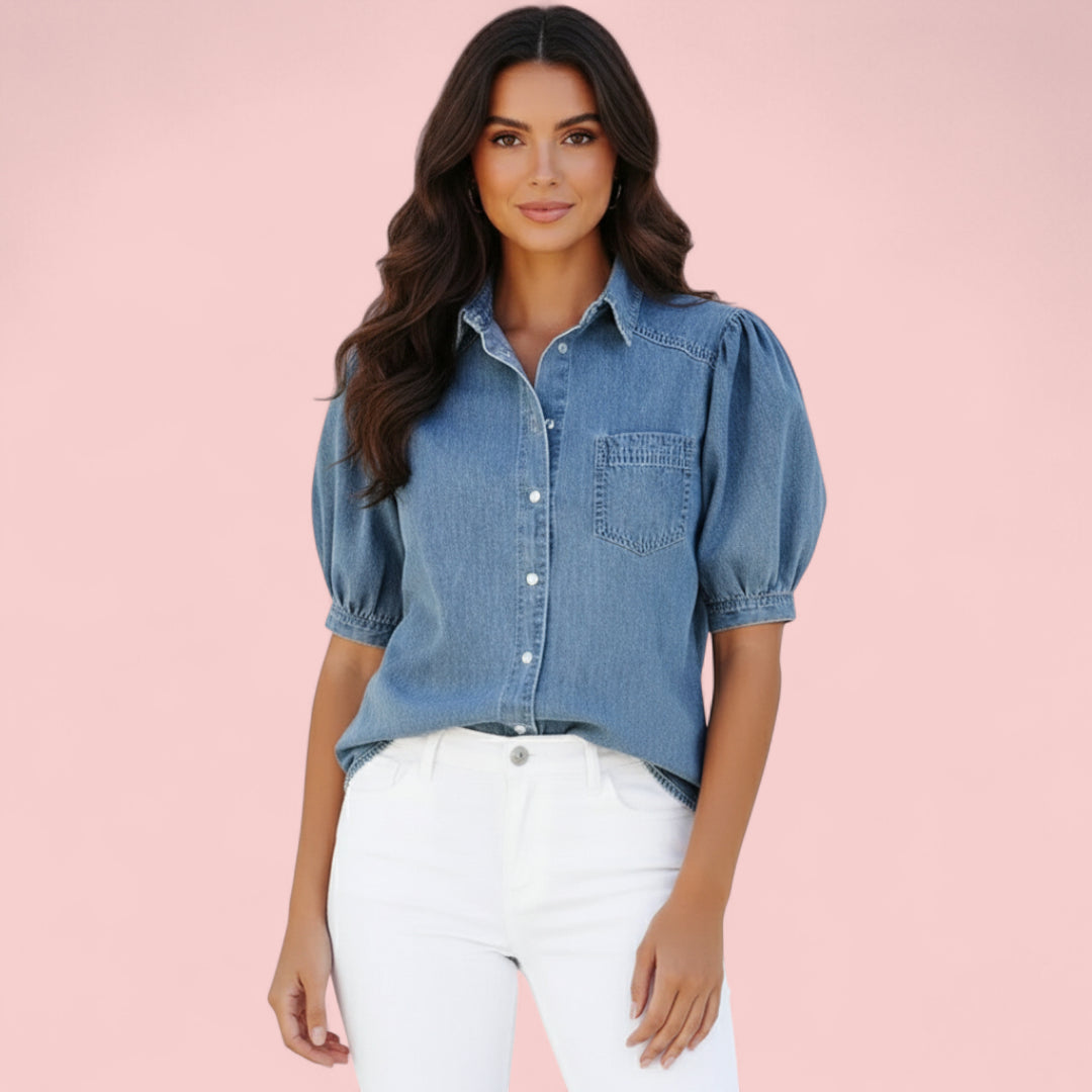Elise | Denim Overhemd met Korte Mouwen, Stijlvolle en Casual Spijkerblouse voor Dagelijks Gebruik voor Vrouwen