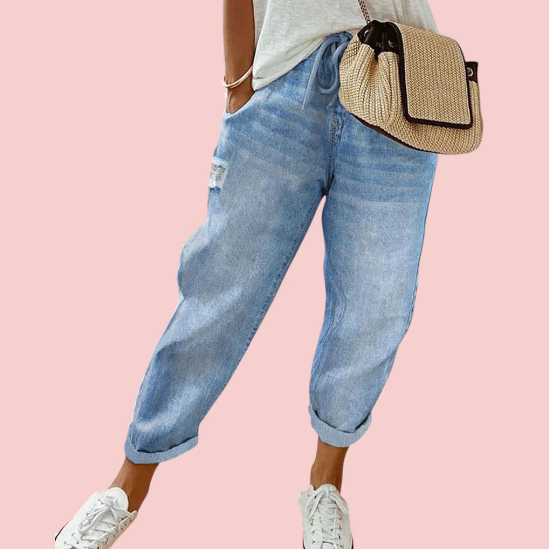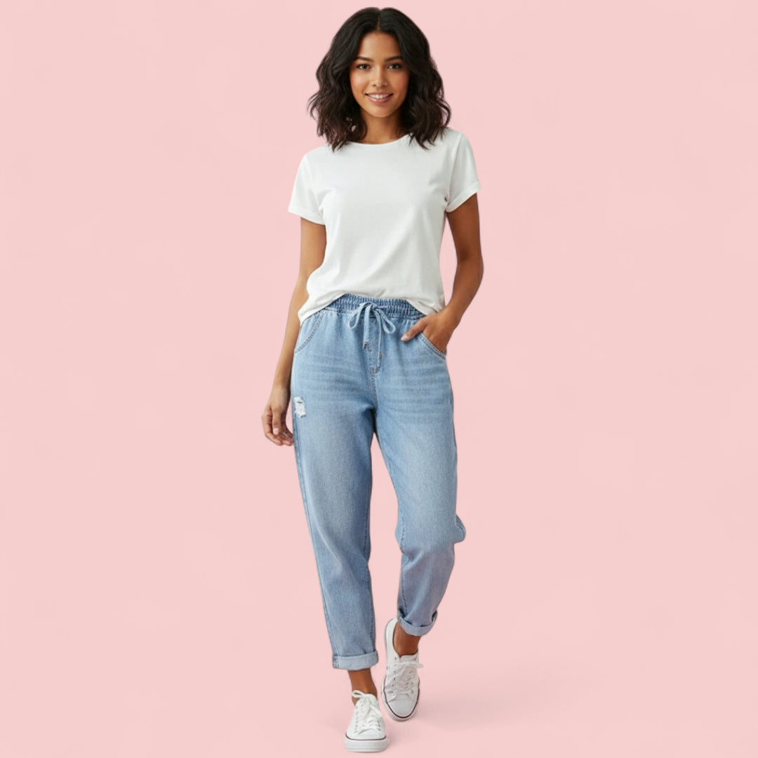 Damesjeans Met Rechte Pijpen En Trekkoord