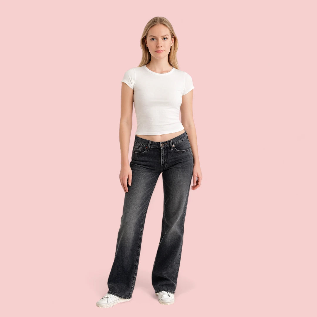 - Lage taille – Rechte pasvorm met een moderne lijn.