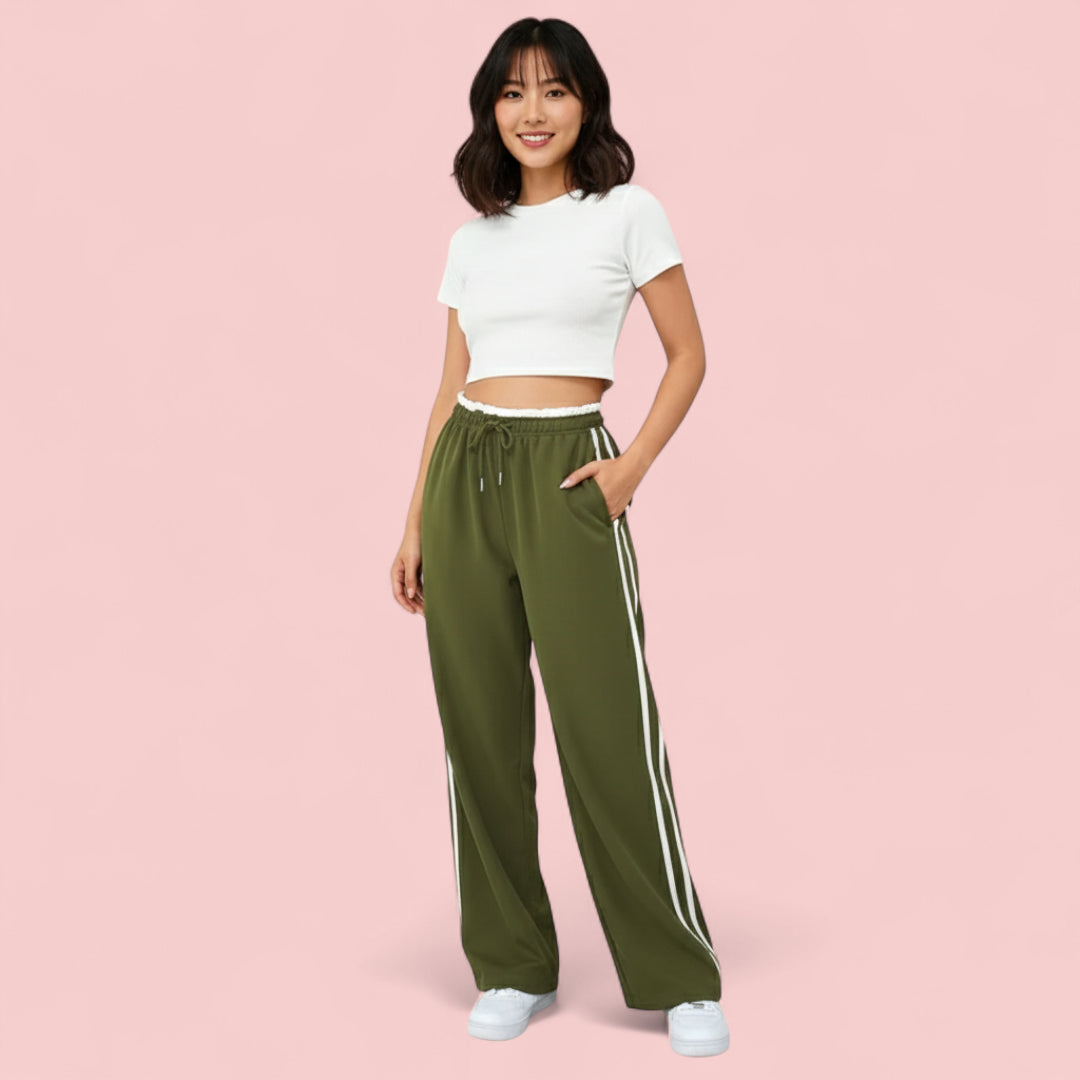 Mila | Broek met Wijde Pijpen, Elastische Tailleband en Sportieve Snit voor Vrouwen