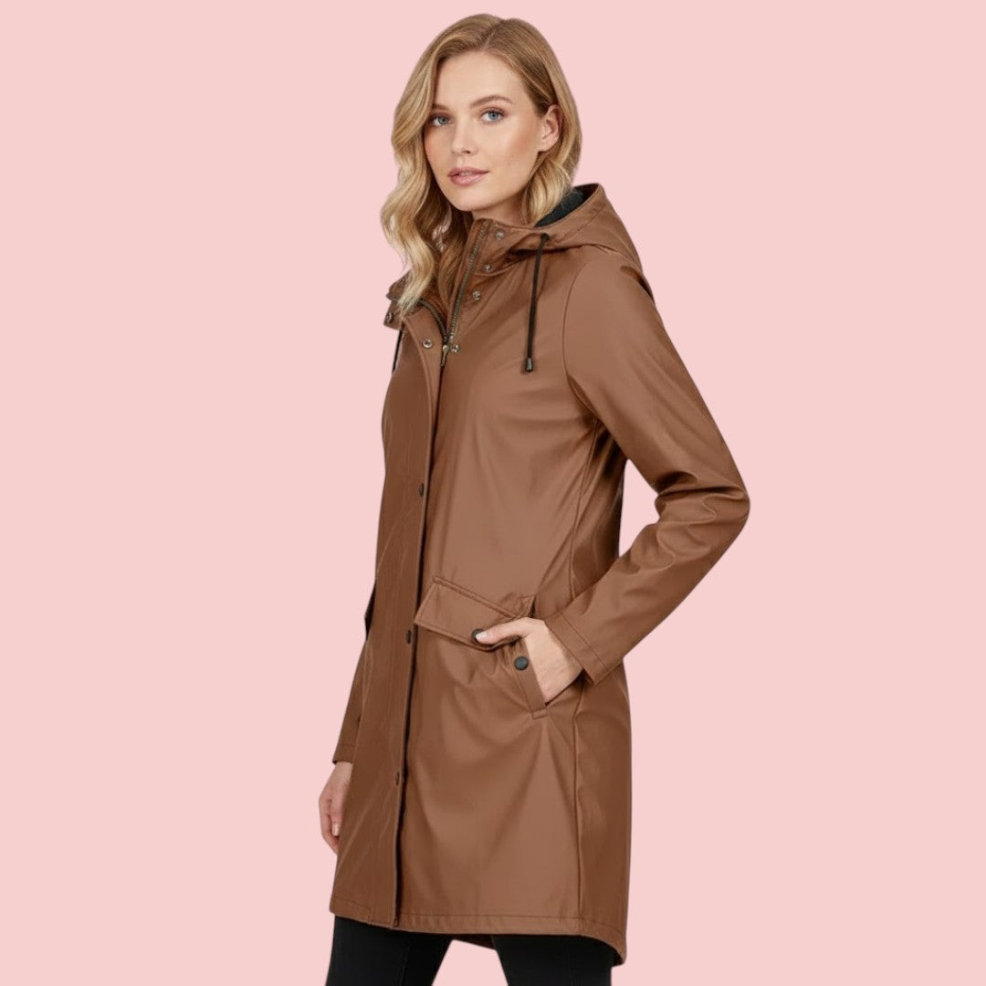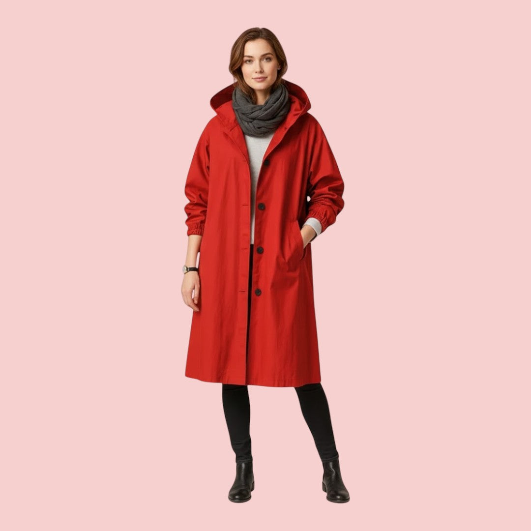 Elora | Lange Regenjas met Capuchon en Drukknoopsluiting voor Dames