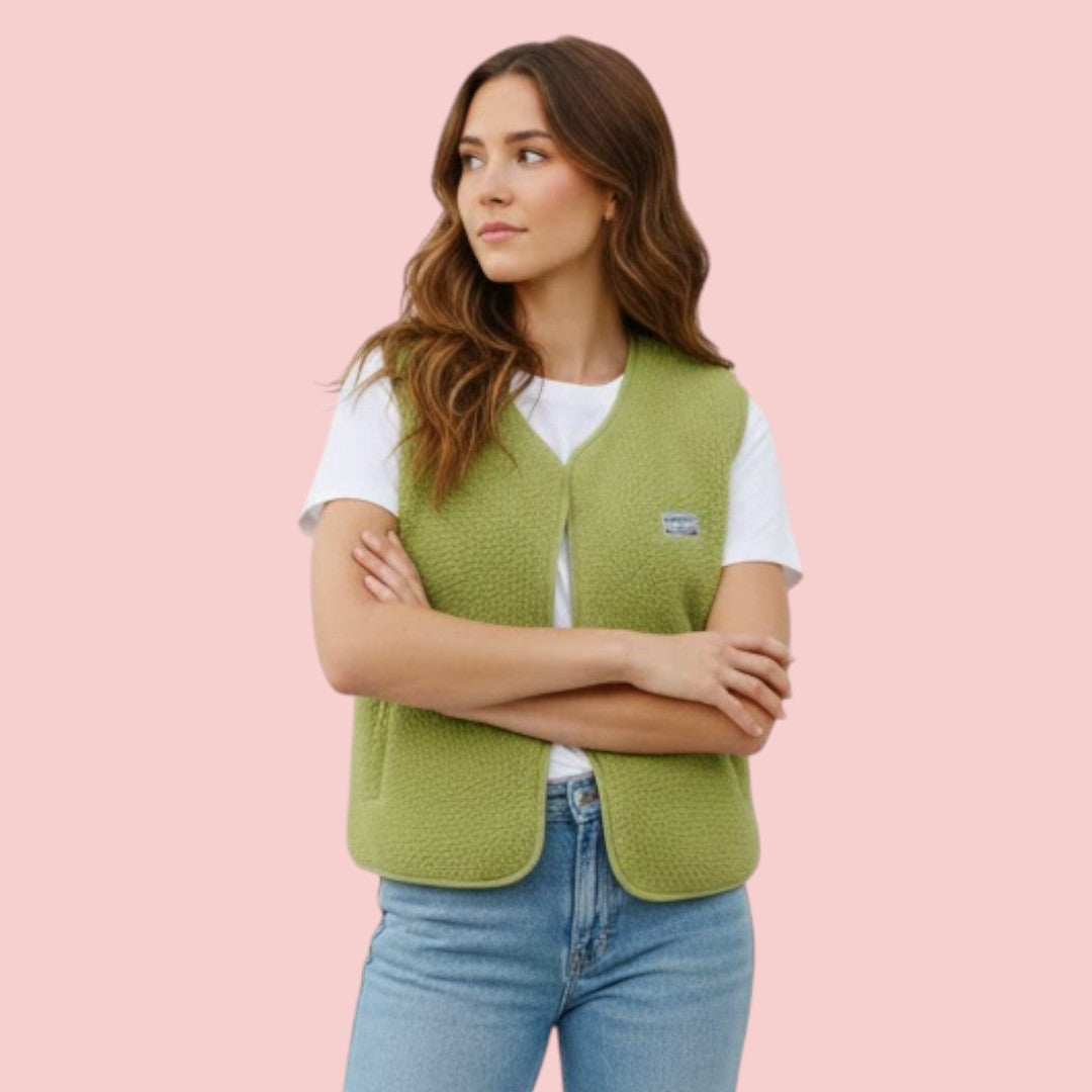 Hazel | Wollen Bodywarmer met Knopen, Trendy en Stijlvolle Mouwloze Jas voor Vrouwen