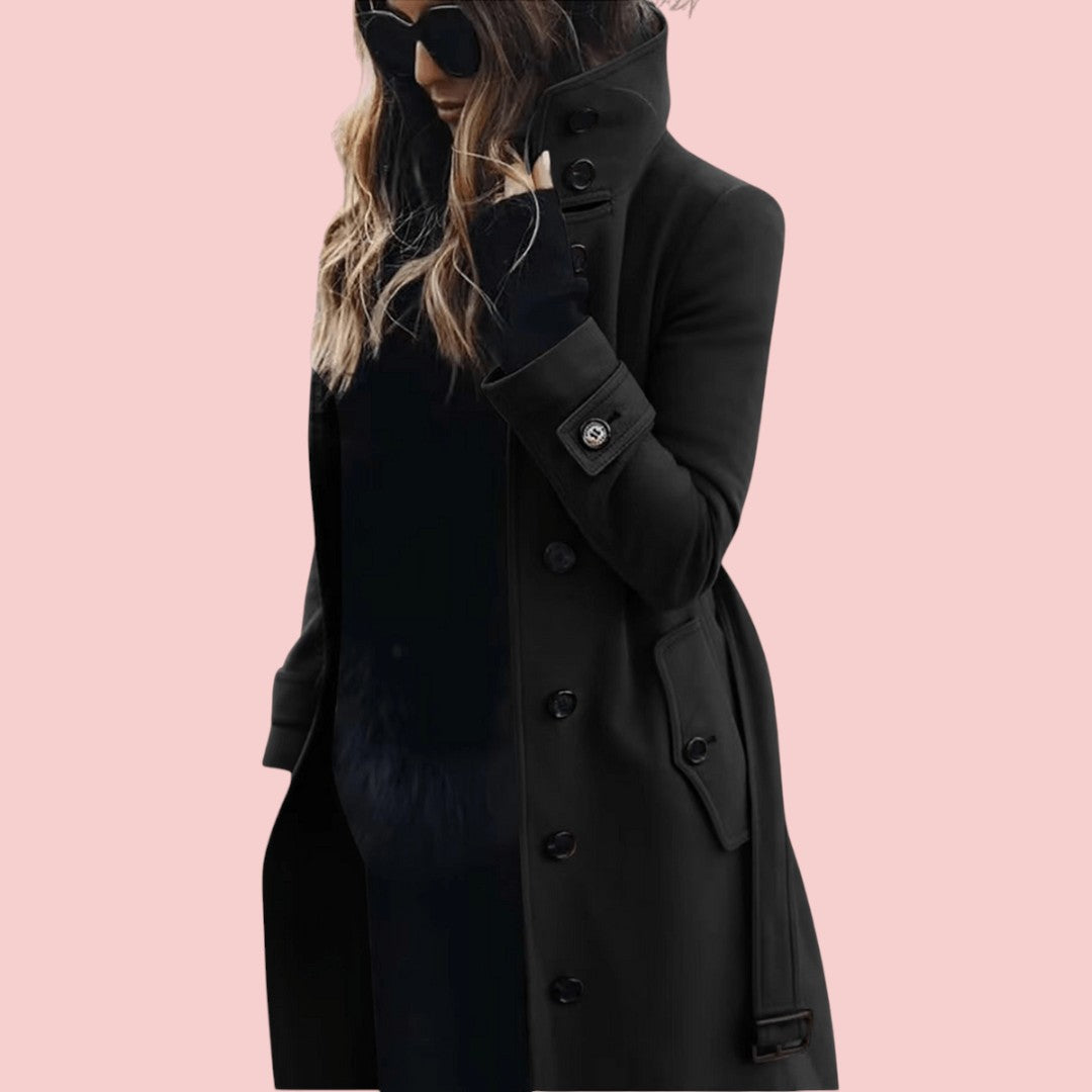 Isabelle | Lange Trenchcoat Met Hoge Kraag En Knoopsluiting Voor Dames