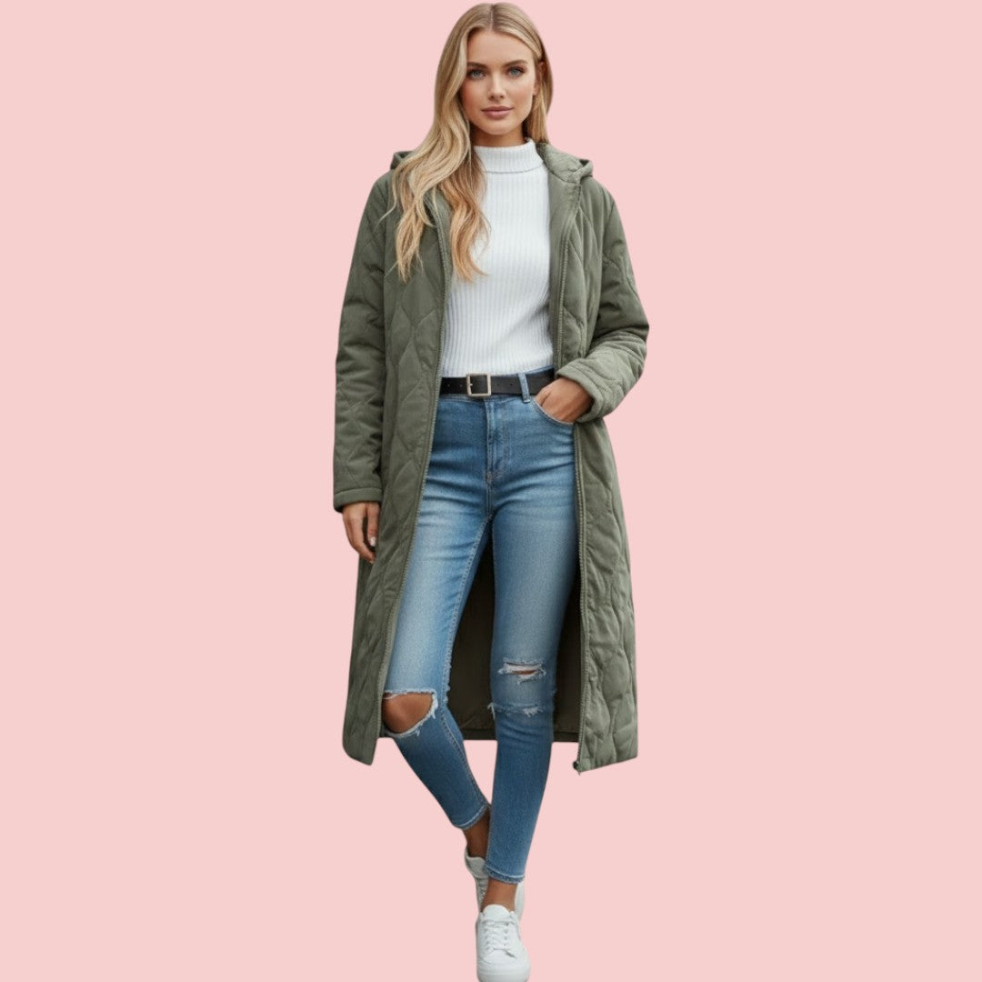 Isla | Lange Gewatteerde Jas met Capuchon en Ritssluiting voor Dames
