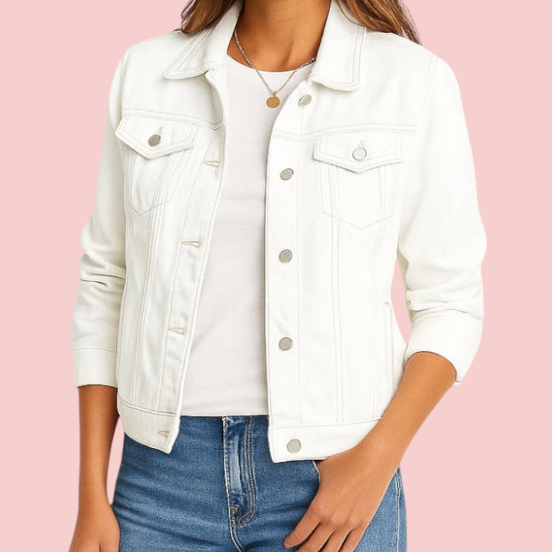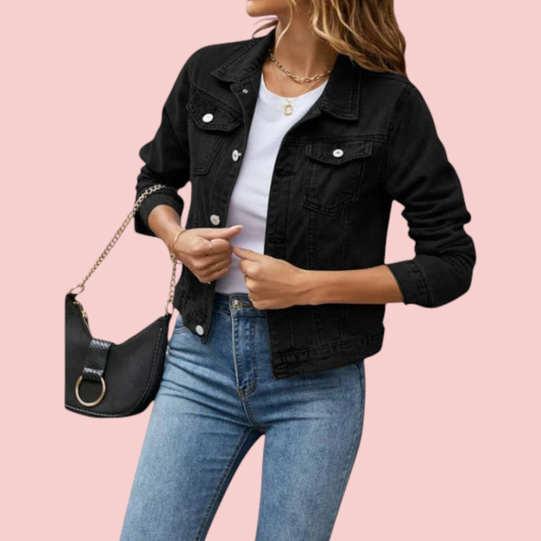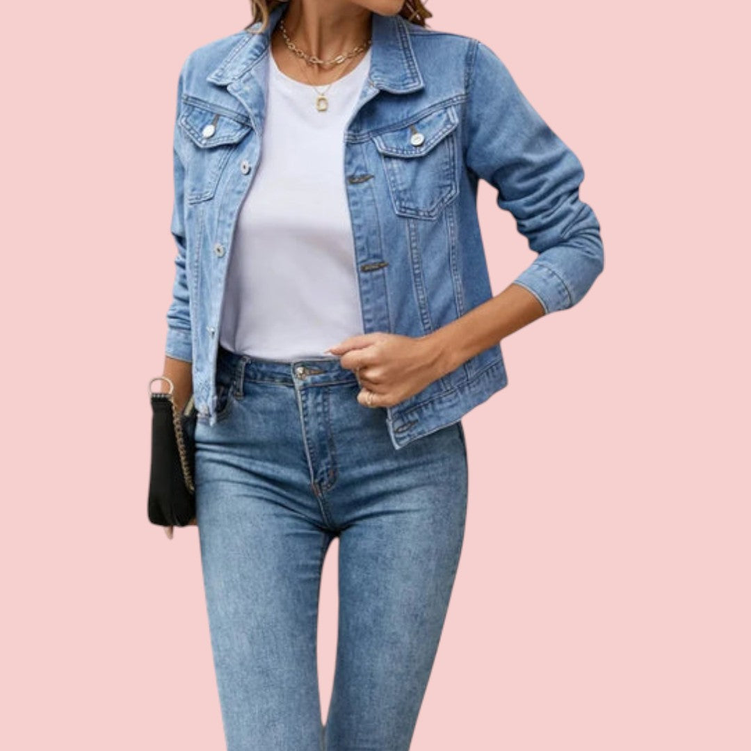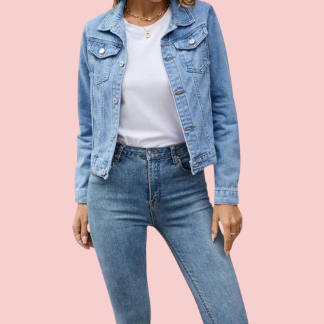 Mira | Gewassen Denim Spijkerjasje met Knoopsluiting voor Dames