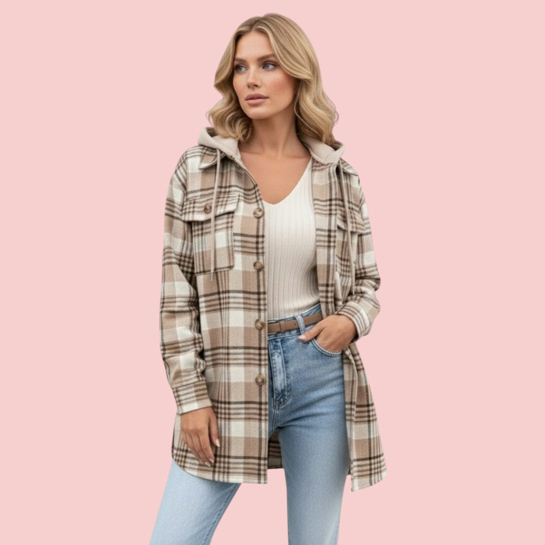 Mila | Geruite Jas met Knoopsluiting en Reverskraag voor Dames