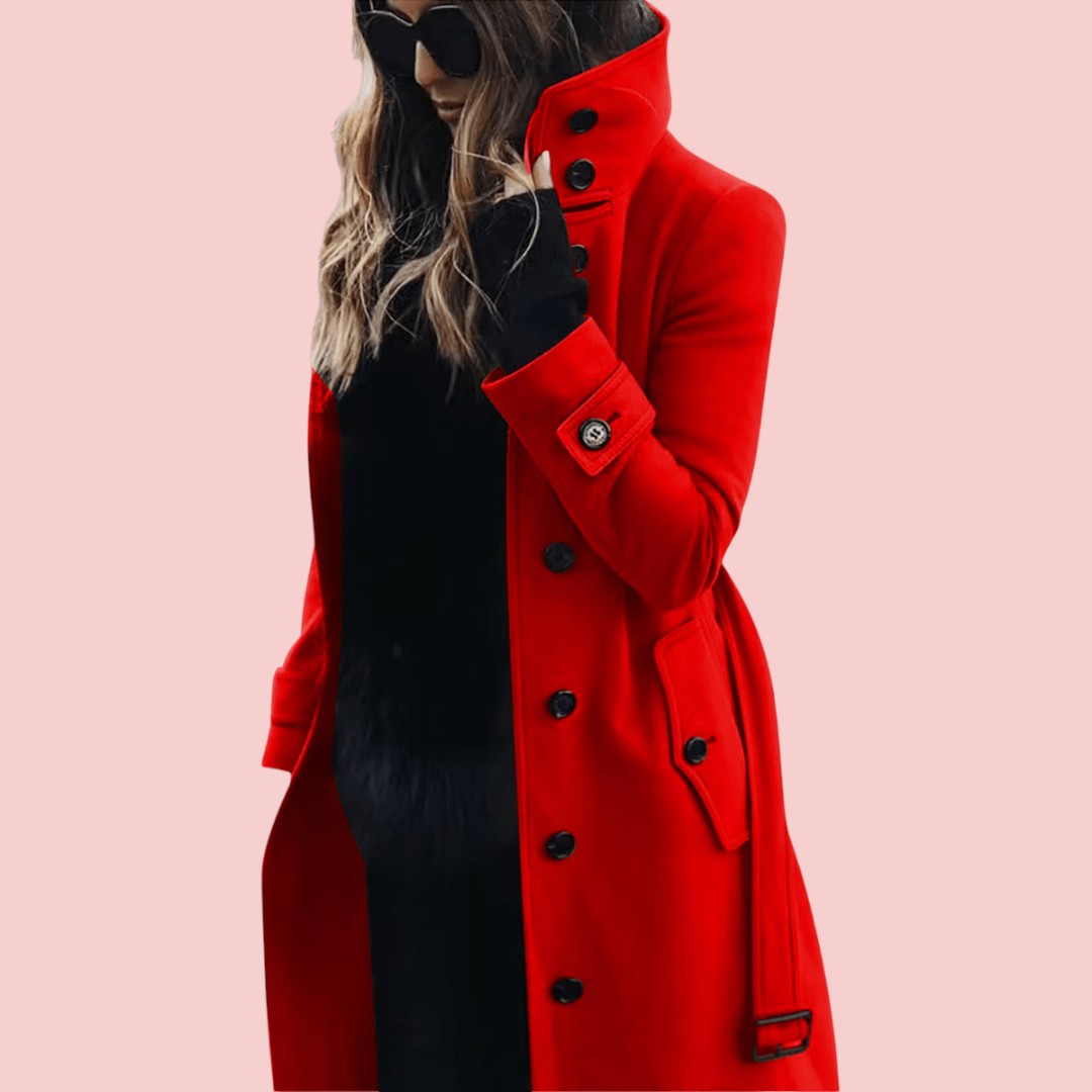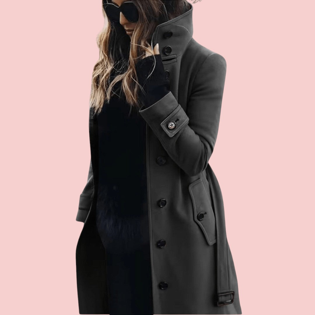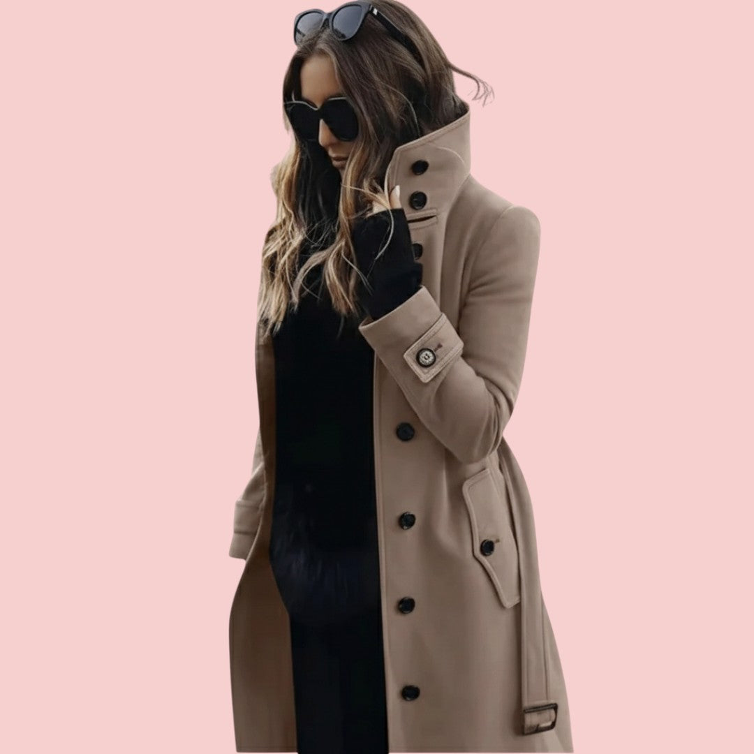 Isabelle | Lange Trenchcoat Met Hoge Kraag En Knoopsluiting Voor Dames