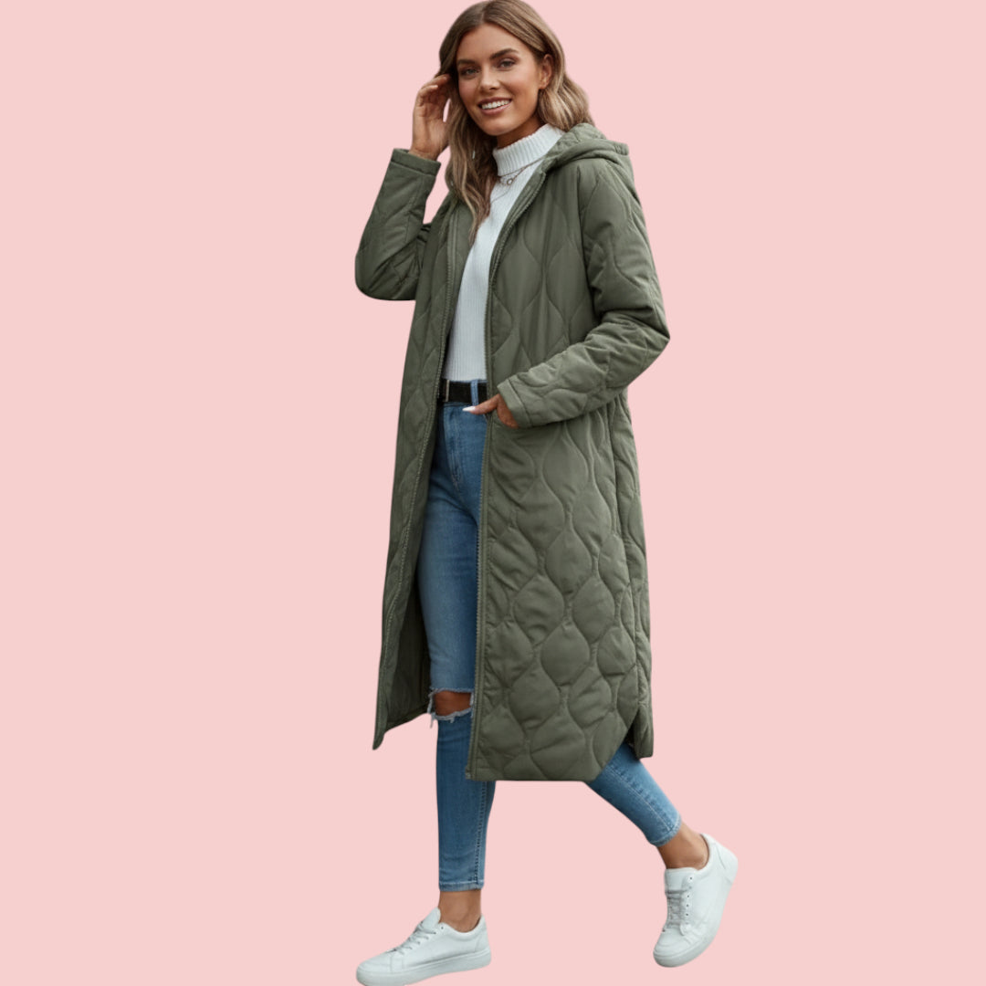 Isla | Lange Gewatteerde Jas met Capuchon en Ritssluiting voor Dames