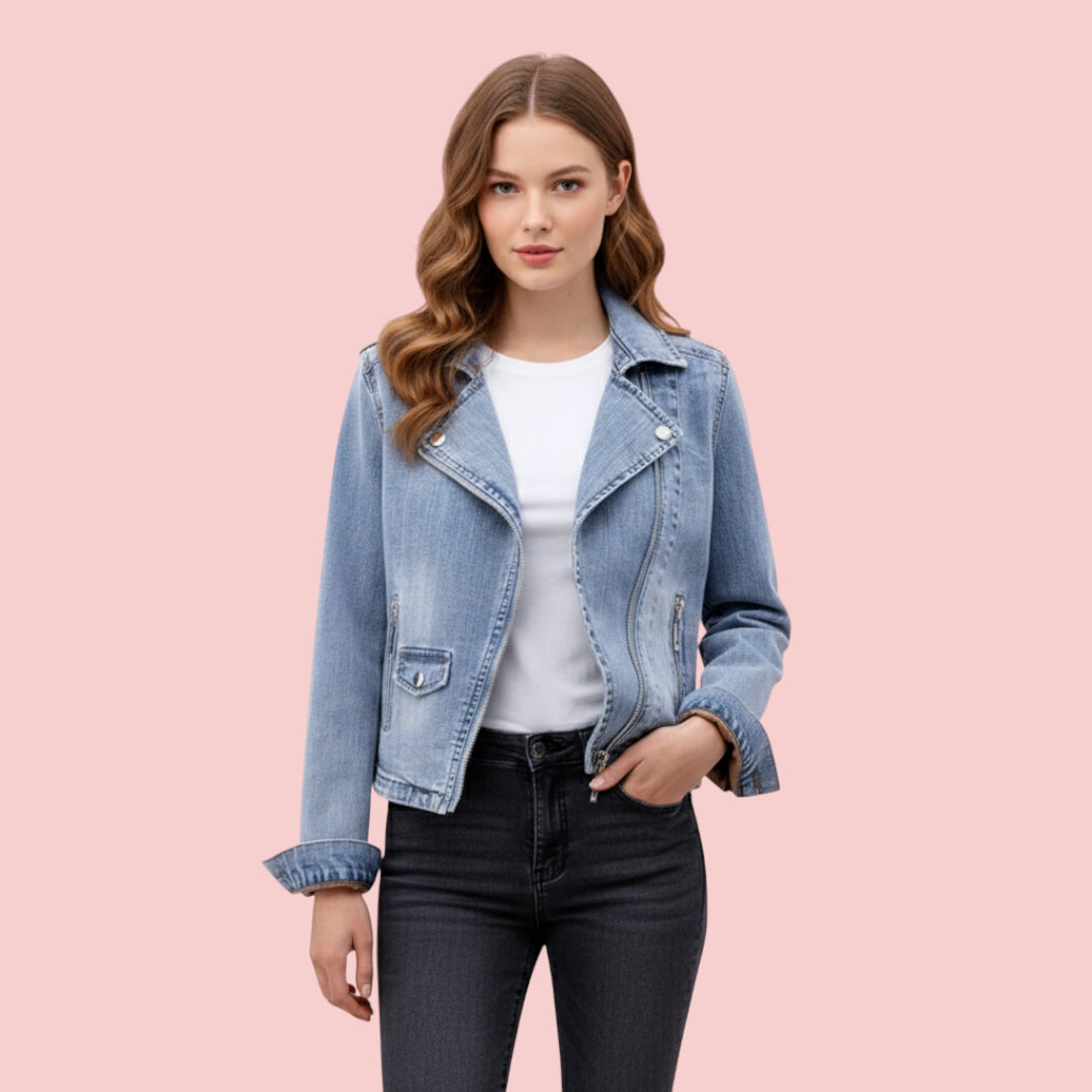 Mira | Gewassen Denim Spijkerjasje met Knoopsluiting voor Dames