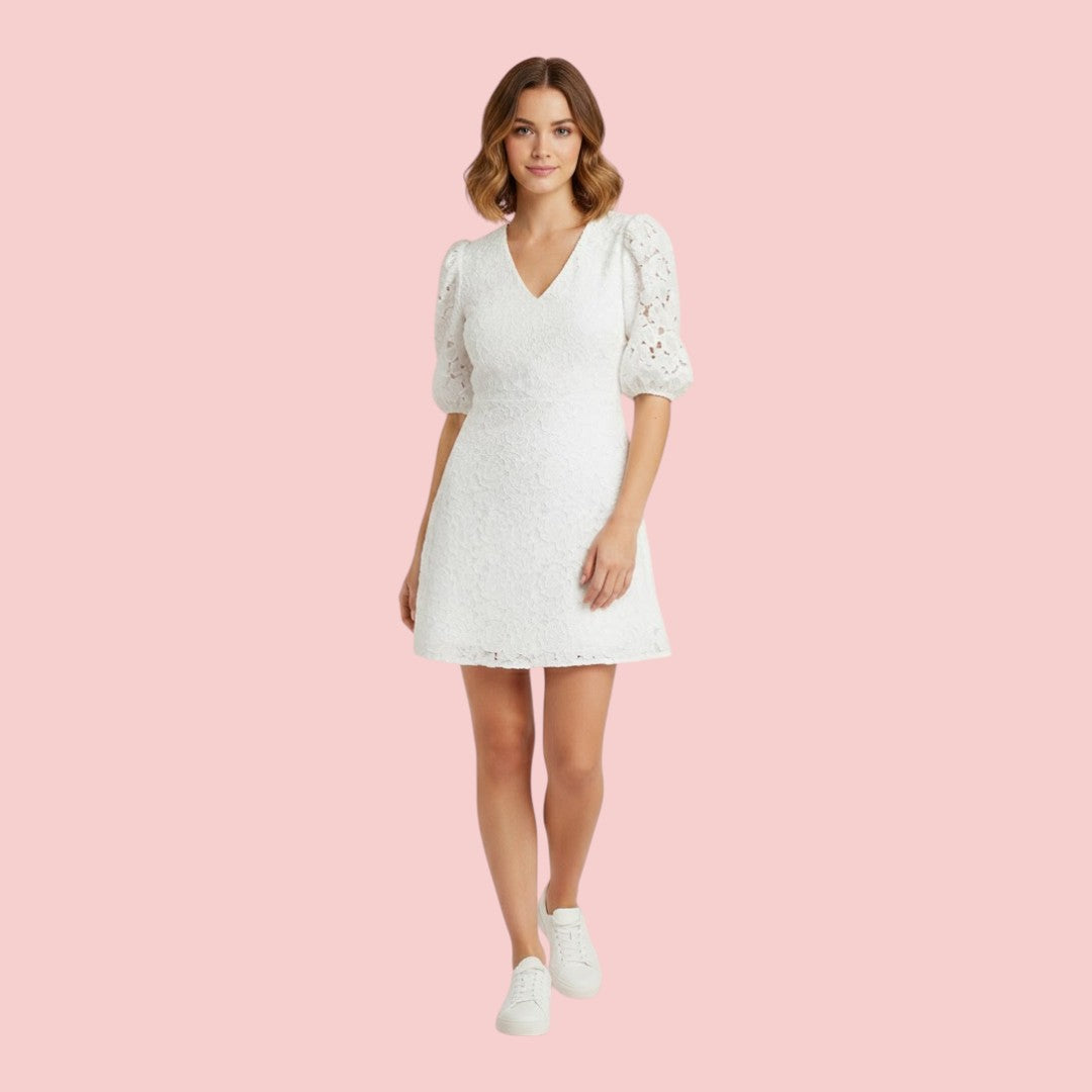 Claudia | Witte Jurk met Geborduurde Ruches, Elegante en Stijlvolle Outfit voor Feest en Speciale Gelegenheden voor Vrouwen