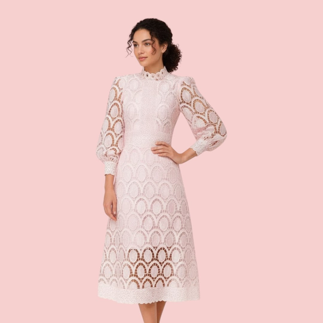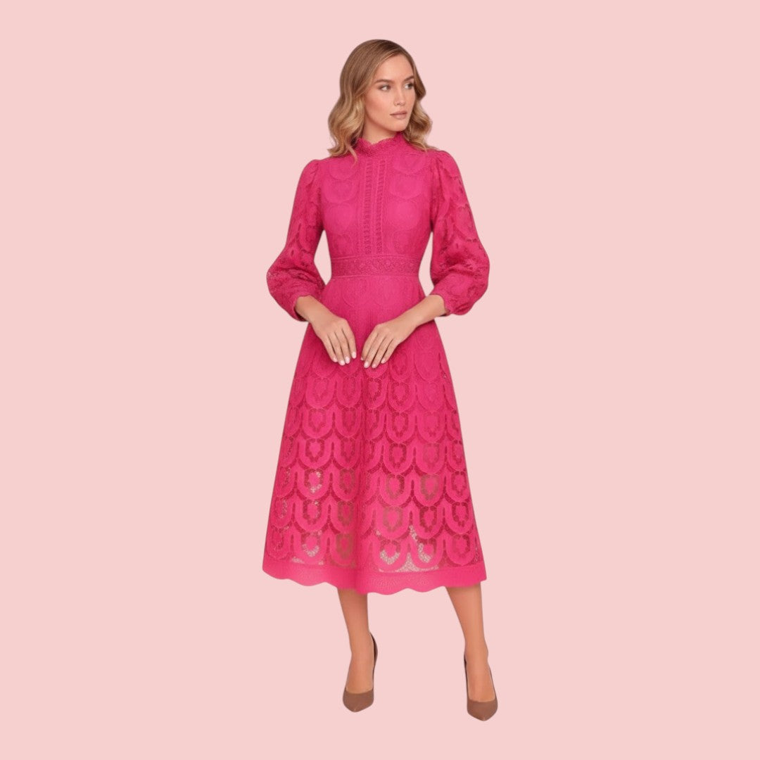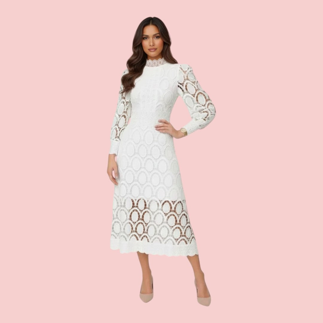 Delilah | Midi Jurk met Lange Mouwen, Elegante Kanten Feest- en Cocktailjurk voor Vrouwen