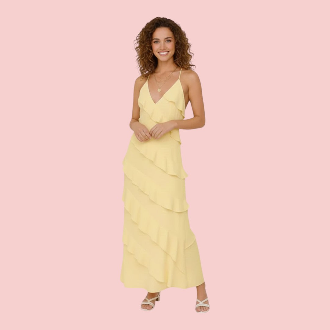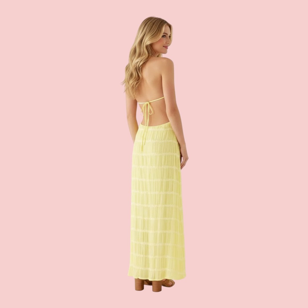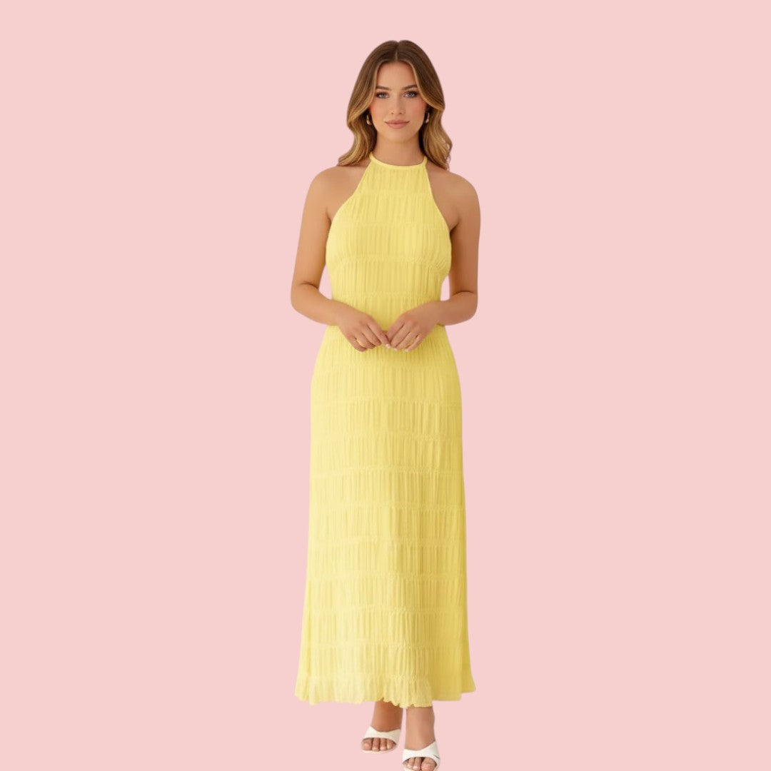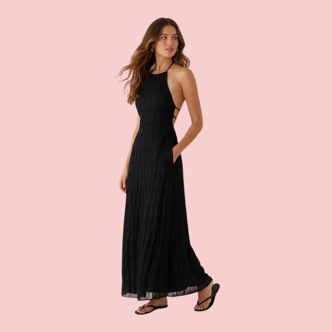 Vivian | Elegante Halter Maxi Jurk met Stijlvolle Open Rug en Chique Lang Ontwerp voor Vrouwen