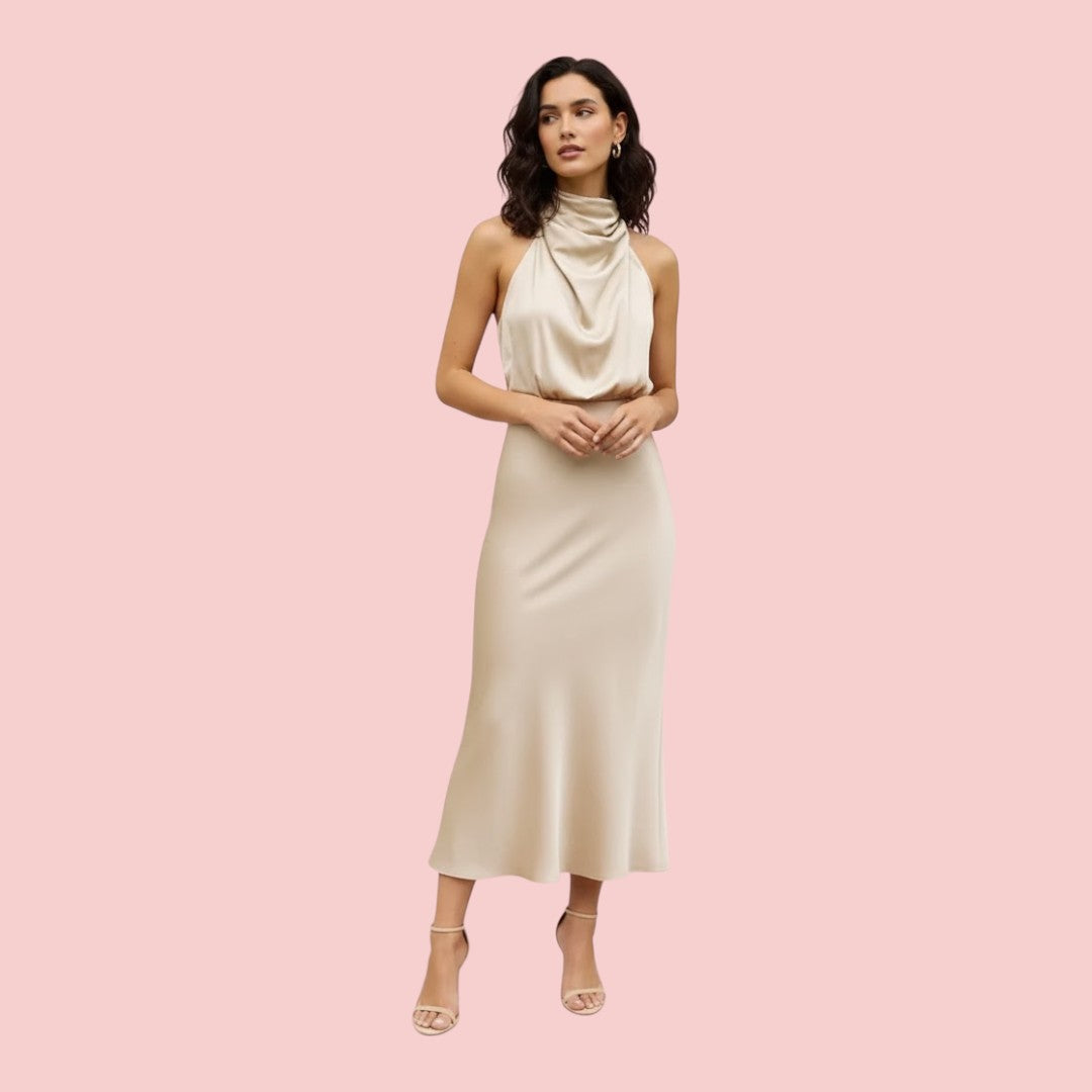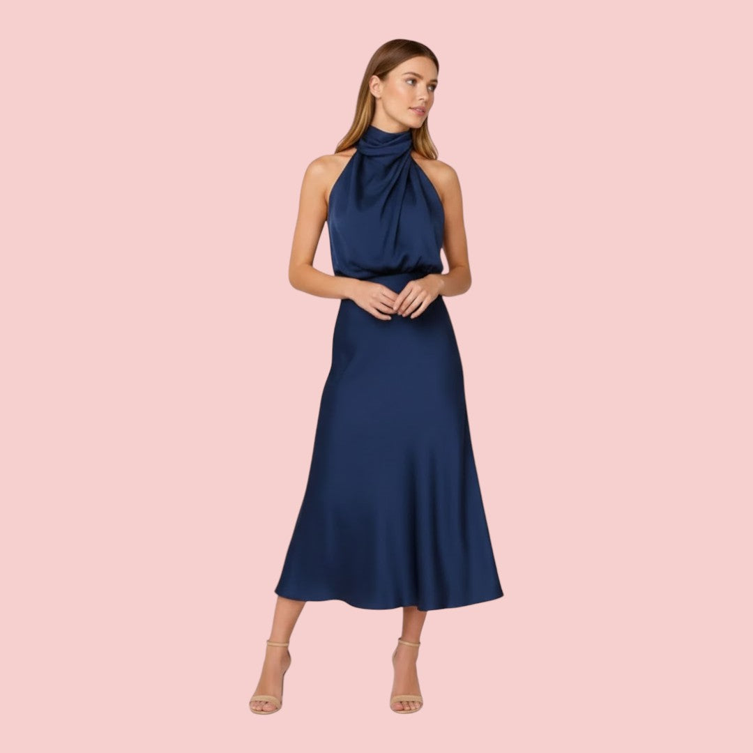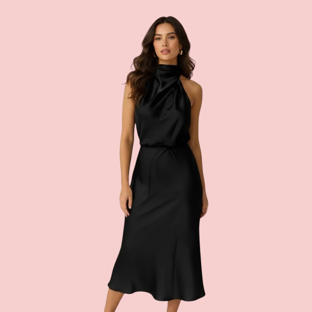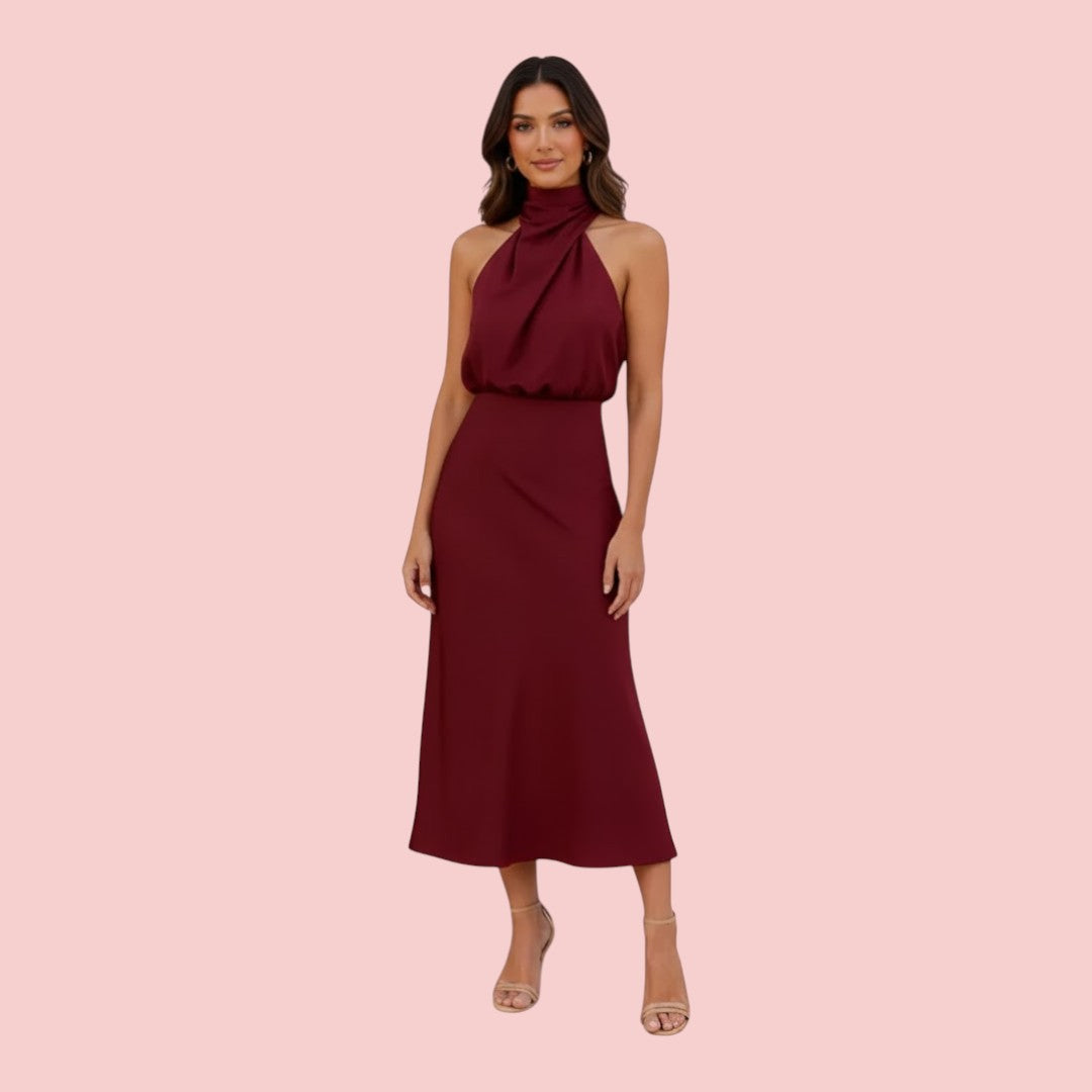 Lydia | Satijnen Halter Jurk met Verfijnd Ontwerp, Elegante Cocktail- en Avondjurk voor Vrouwen