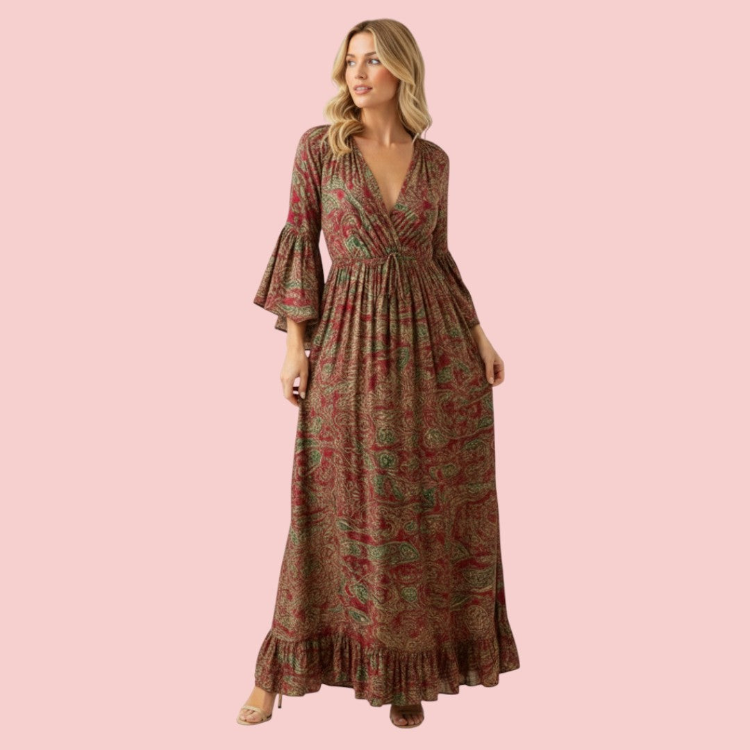 Lyra | Lange Jurk met Bohemian Details en V-hals voor Dames