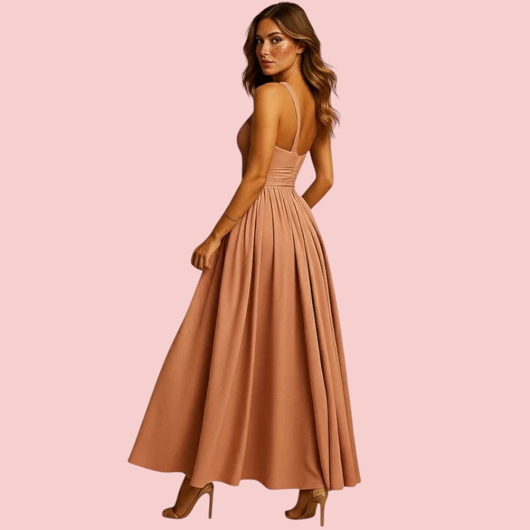 Catherine | Lange Jurk met Open Rug en V-hals voor Dames