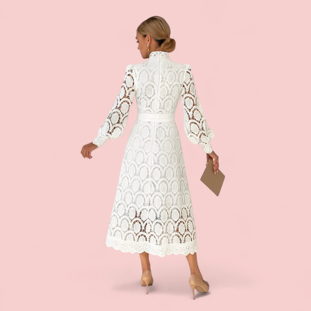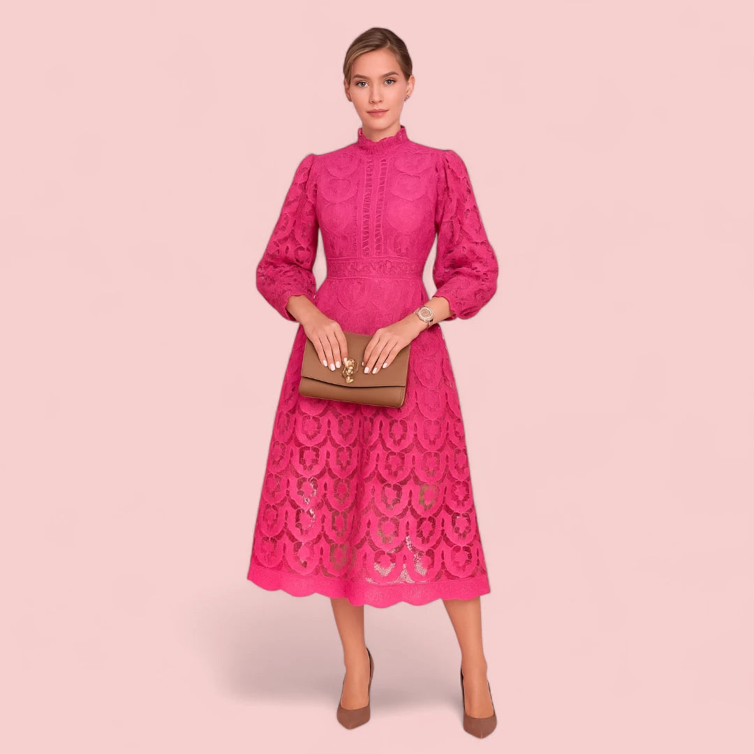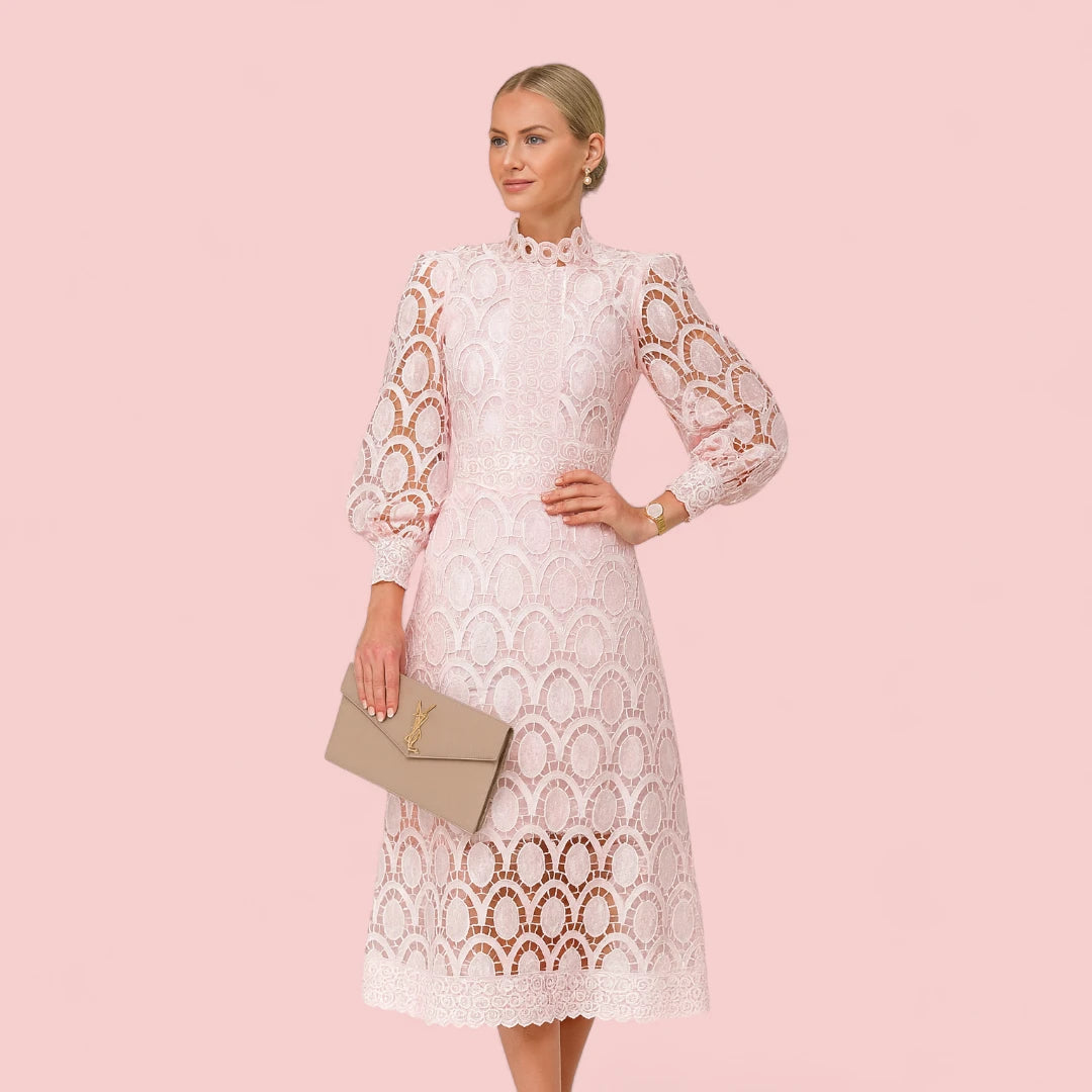 Delilah | Midi Jurk met Lange Mouwen, Elegante Kanten Feest- en Cocktailjurk voor Vrouwen