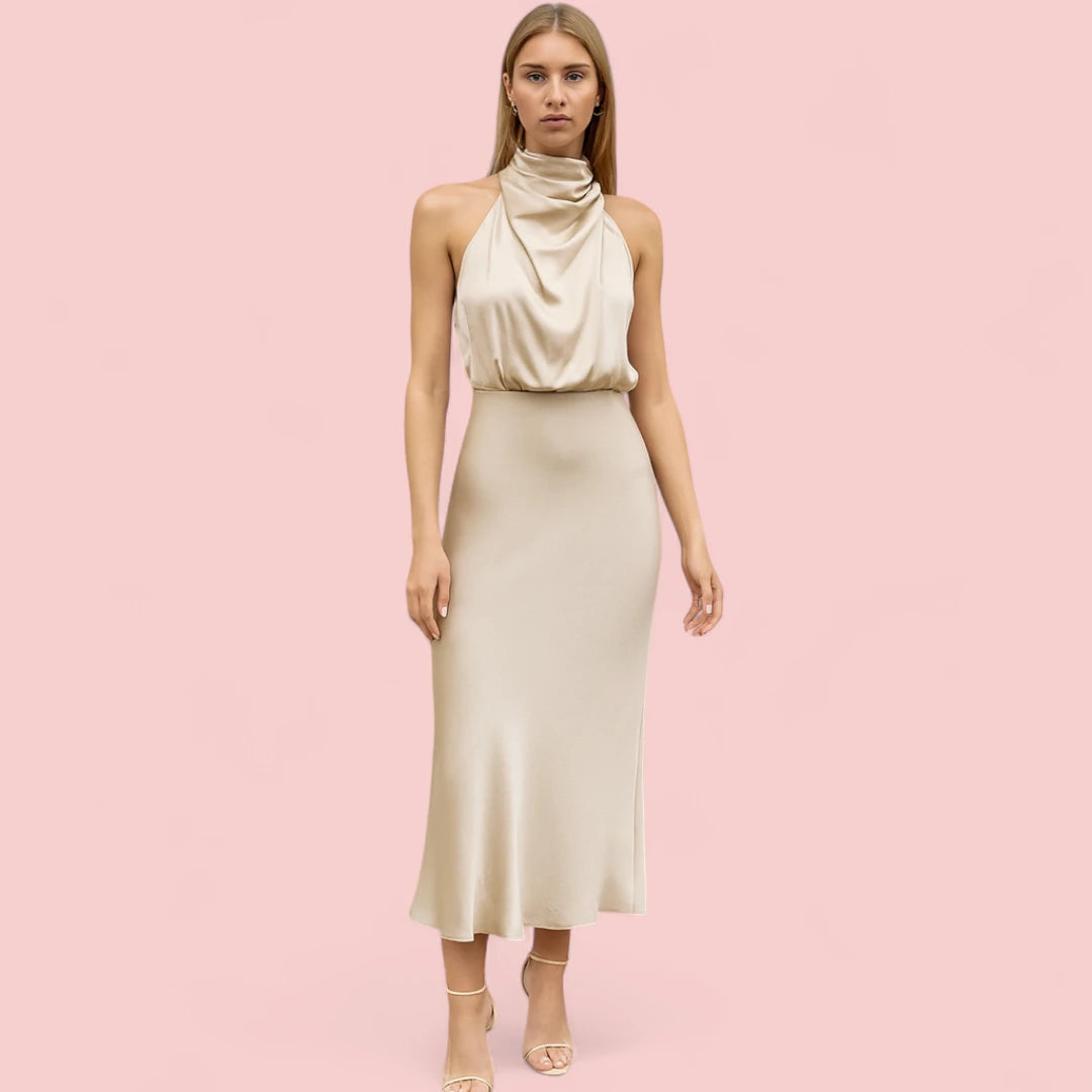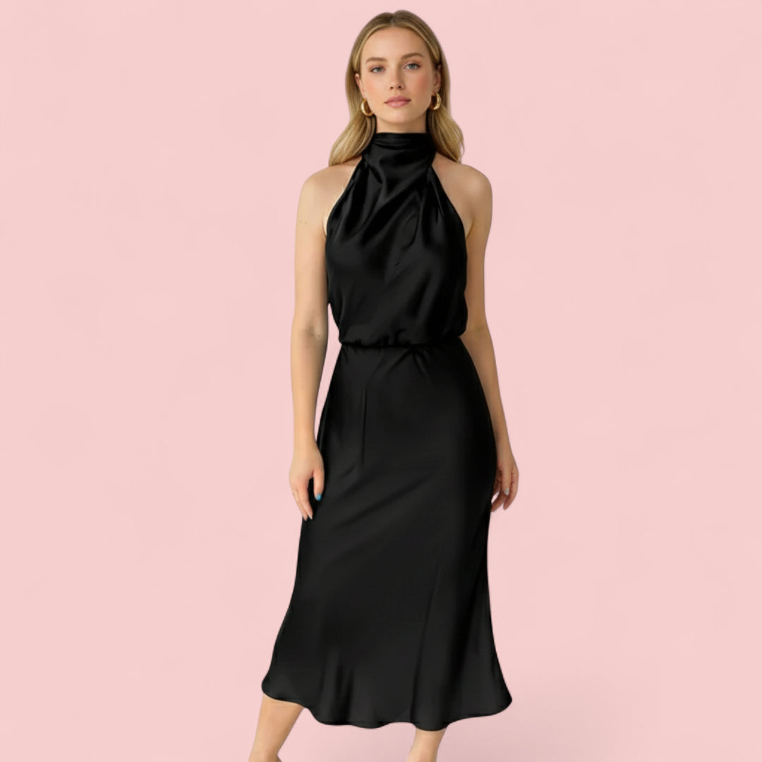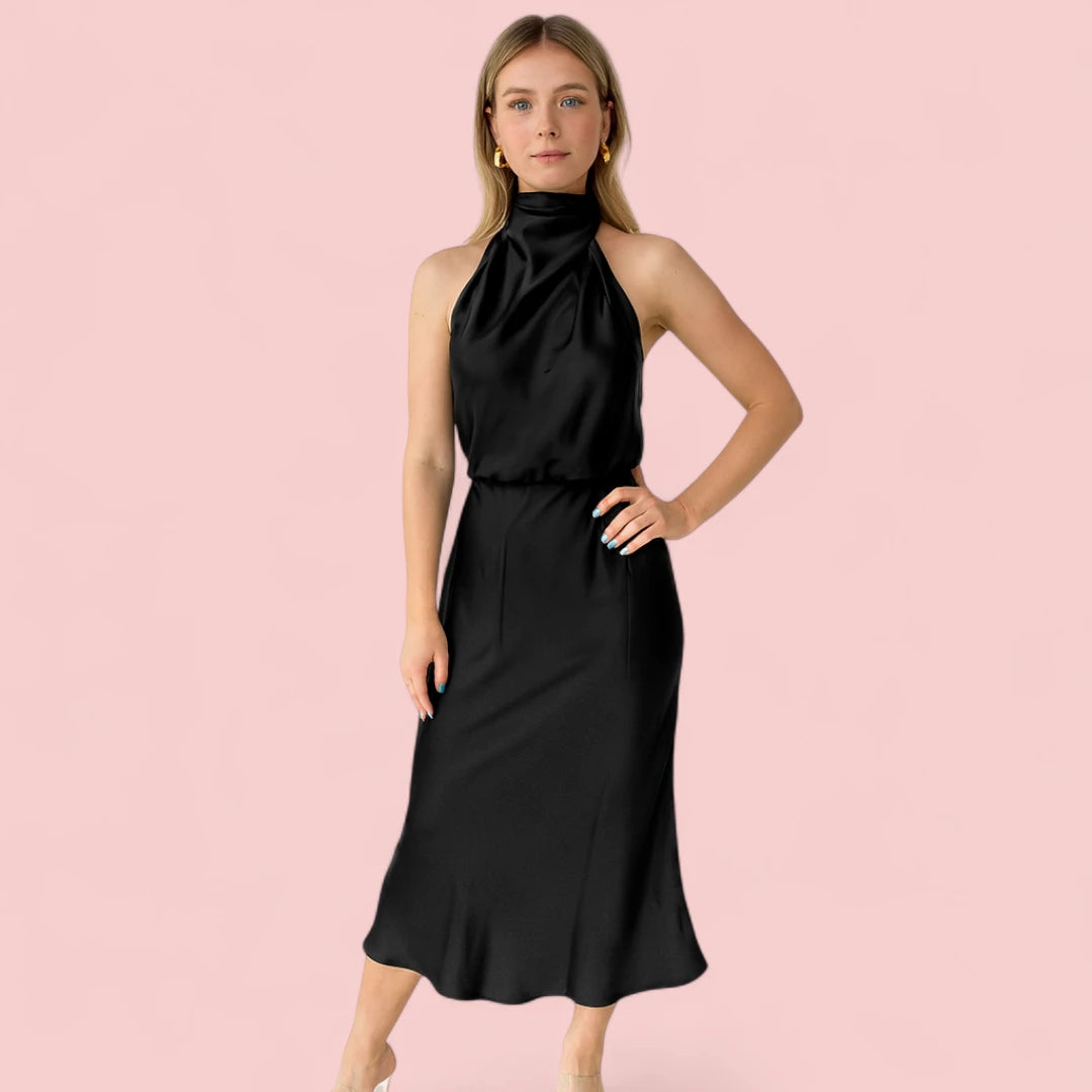 Lydia | Satijnen Halter Jurk met Verfijnd Ontwerp, Elegante Cocktail- en Avondjurk voor Vrouwen