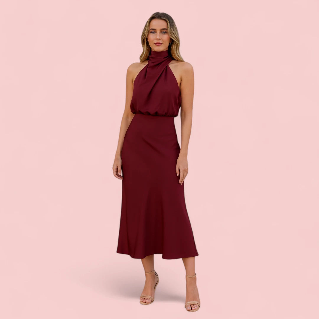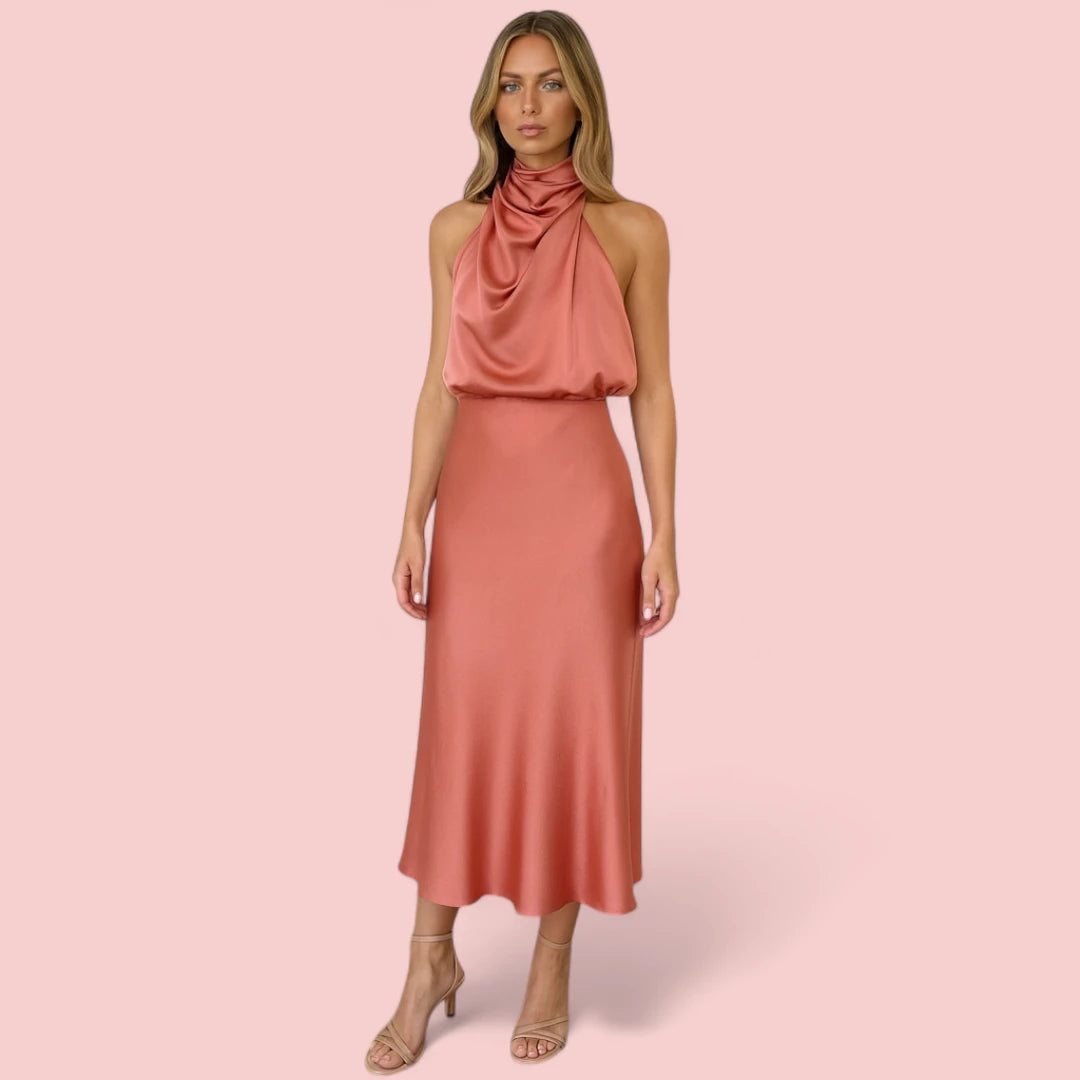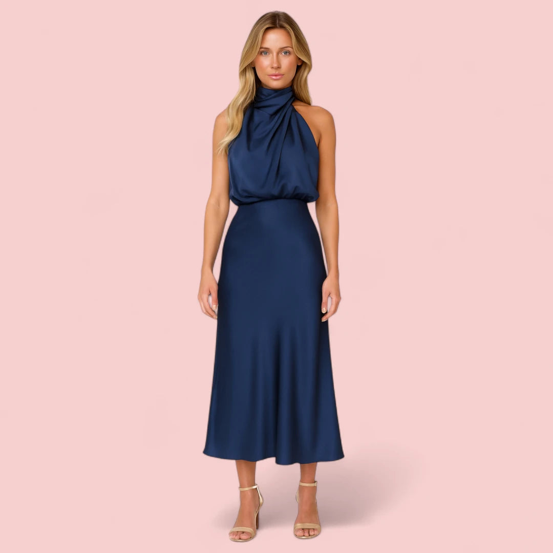 Lydia | Satijnen Halter Jurk met Verfijnd Ontwerp, Elegante Cocktail- en Avondjurk voor Vrouwen