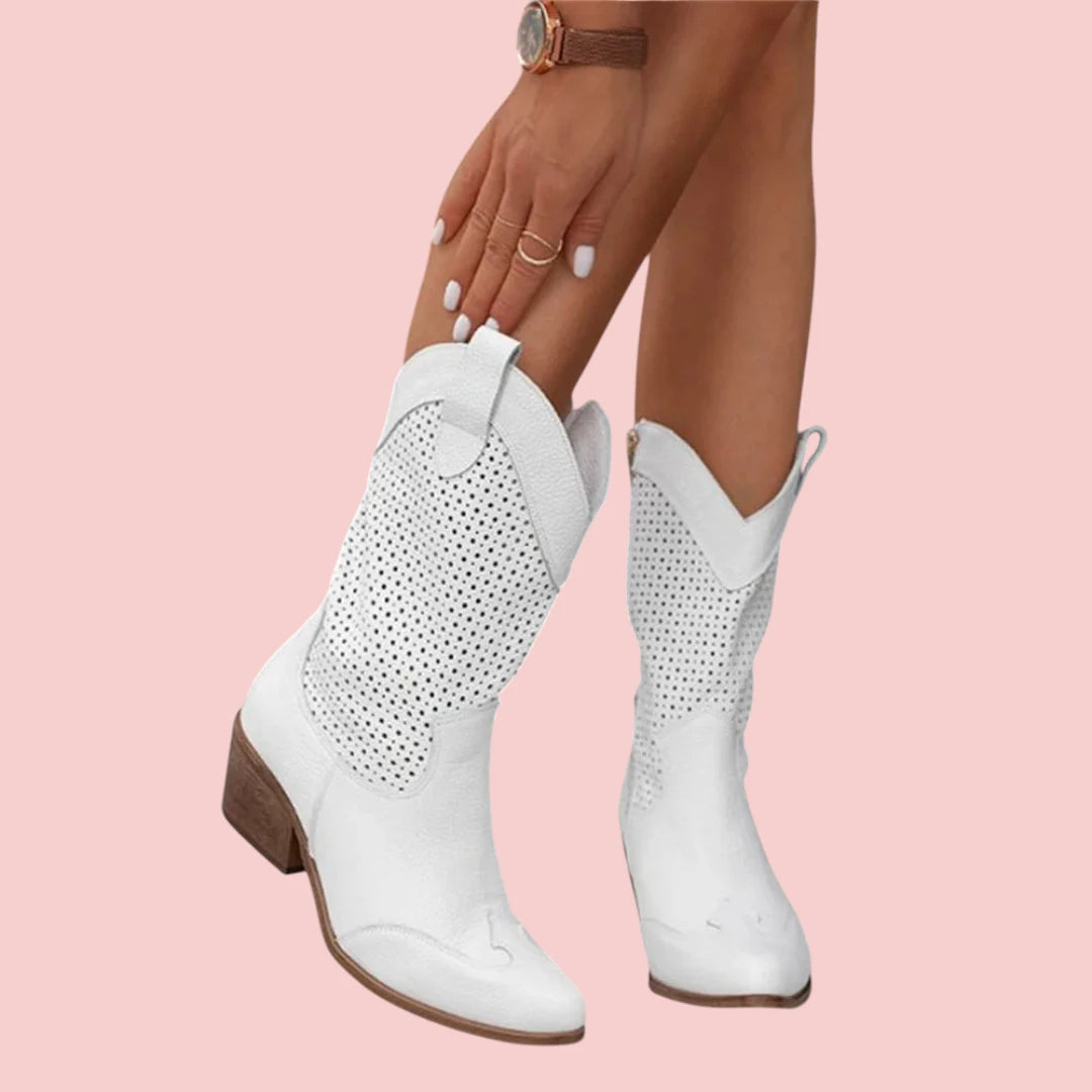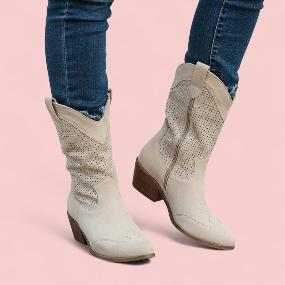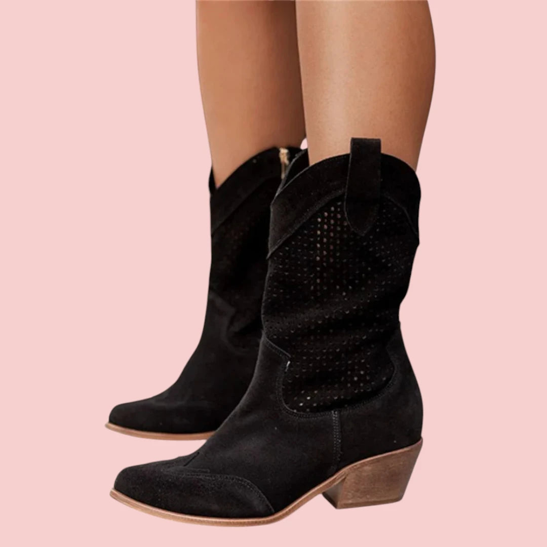 Dames Westernlaarzen Met Halflange Schacht En Lage Hak
