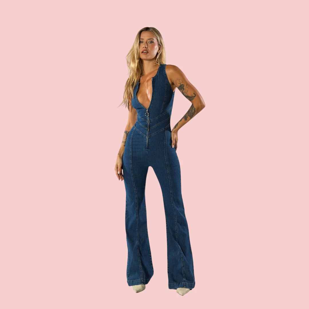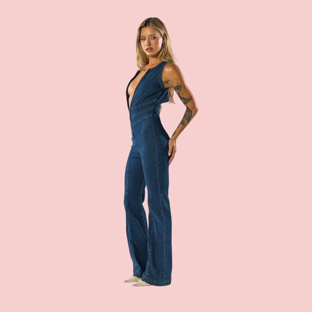 Amaya | Denim Jumpsuit met Hartvormige Uitsnede, Trendy en Comfortabele Outfit voor Vrouwen