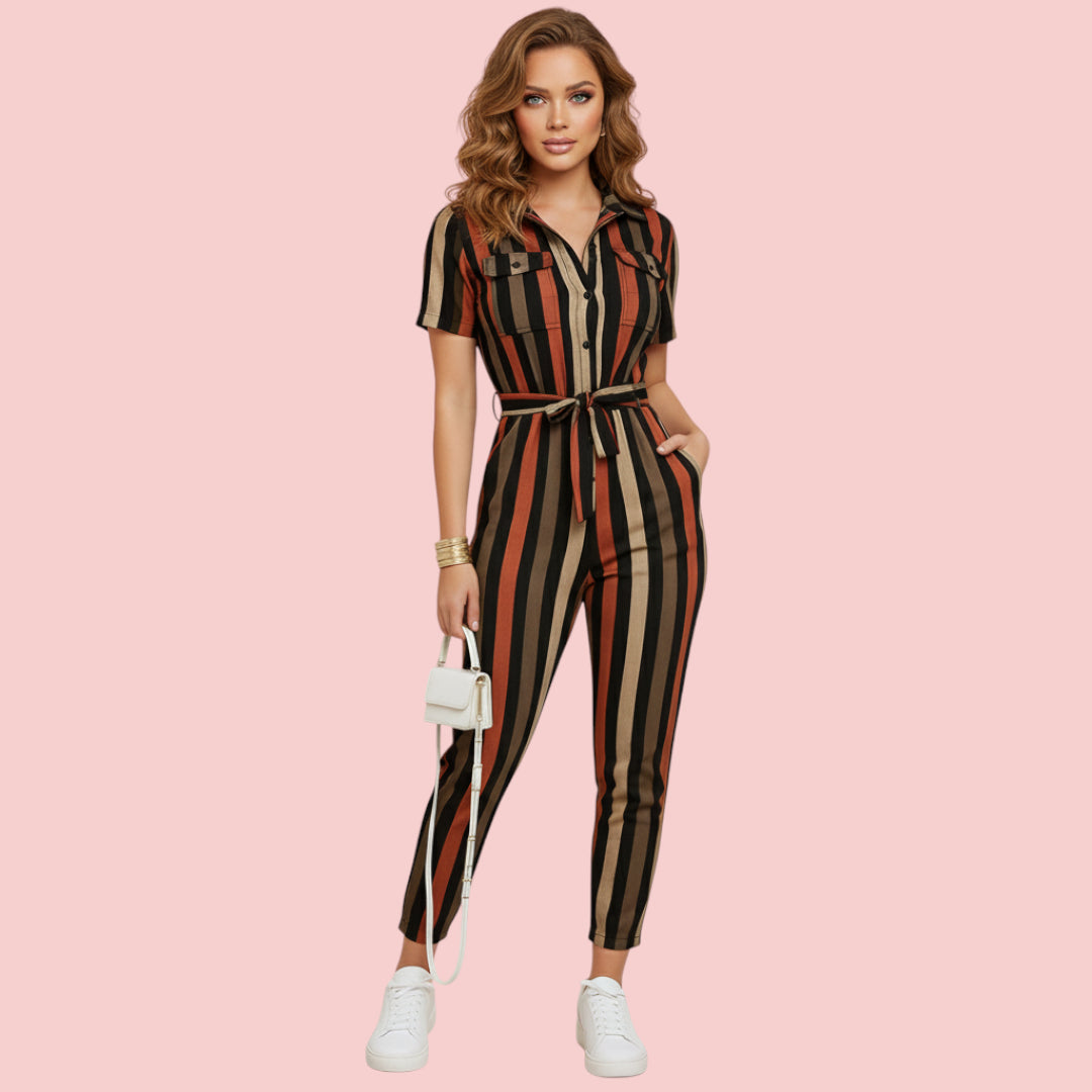 Kristen | Jumpsuit met Kraag en Strikceintuur voor Dames