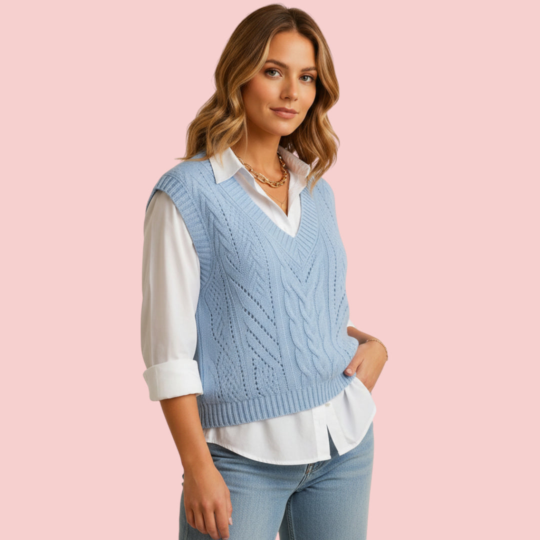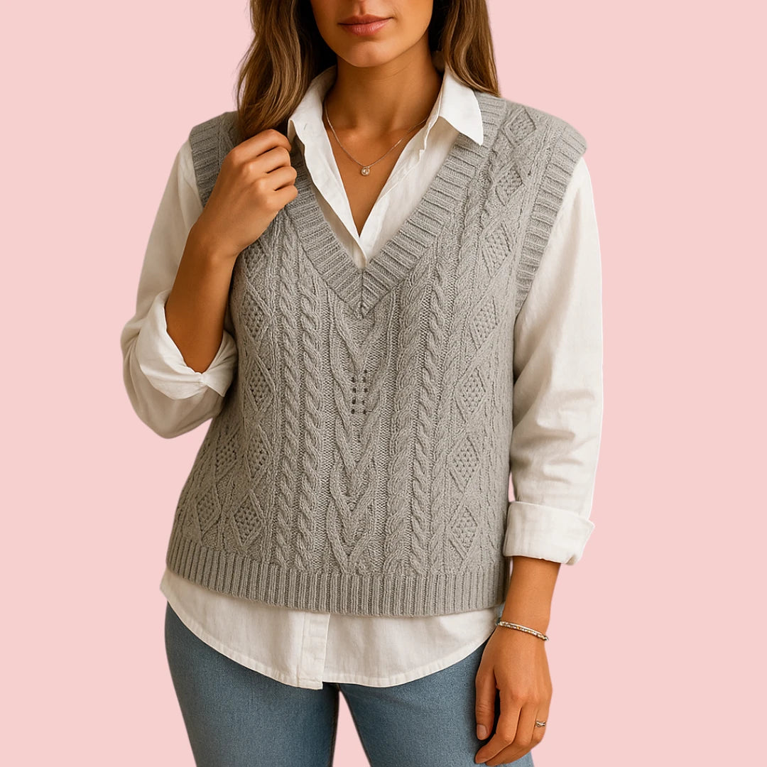 Faye | Mouwloos Kabelgebreid Vest met V-hals en Knoopsluiting voor Dames
