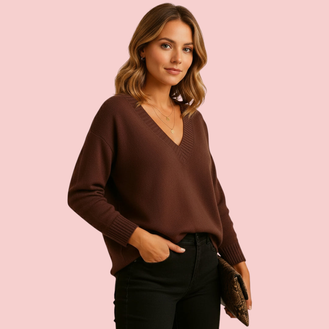 Maeve | Gebreide V-hals Trui met Lange Mouwen en Rechte Pasvorm voor Dames