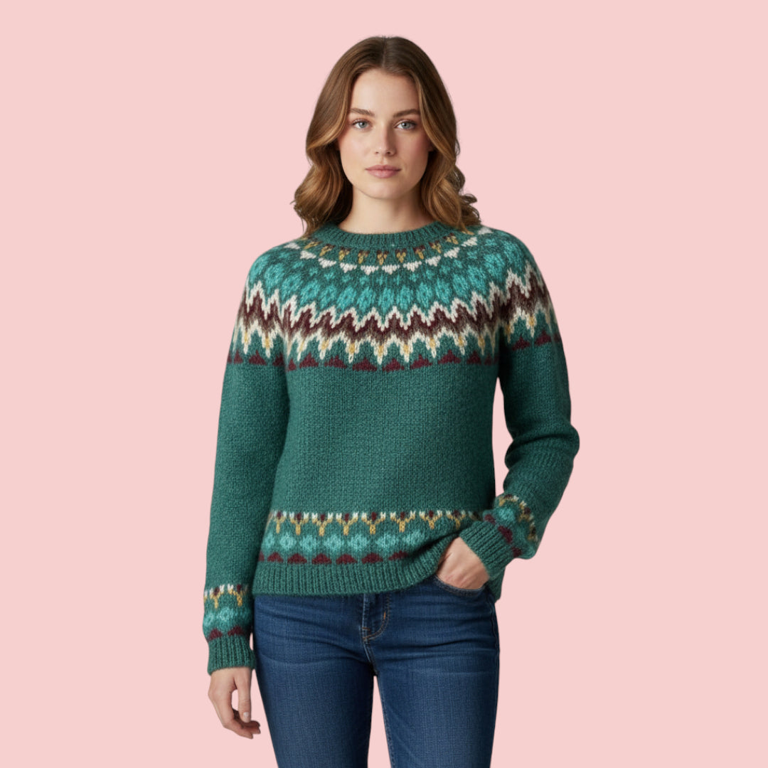 Freya | Gebreide Trui met Noors Motief en Ronde Hals voor Dames