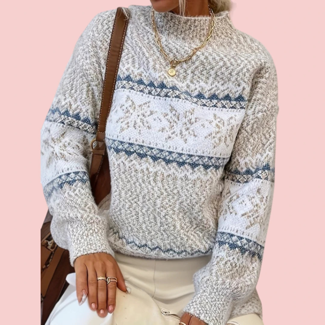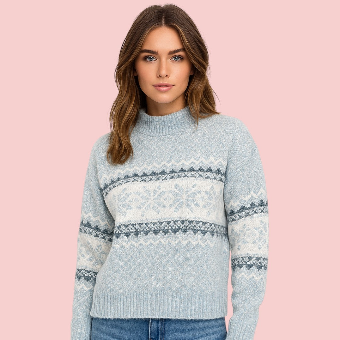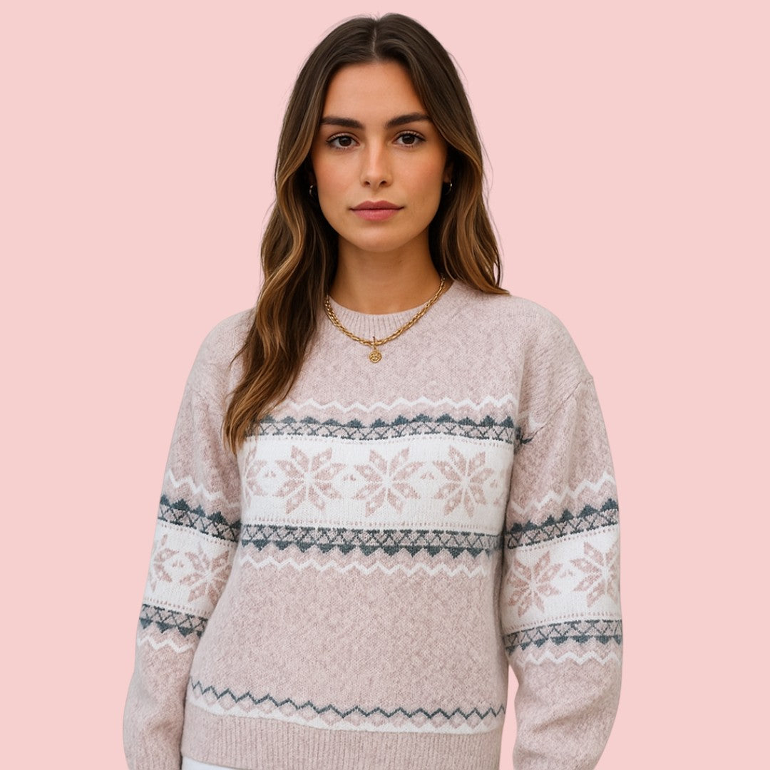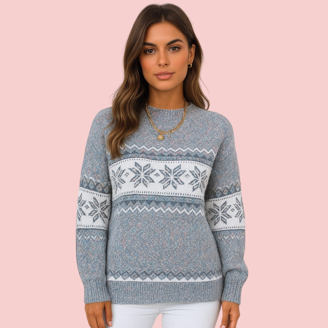 Freya | Gebreide Trui met Noors Motief en Ronde Hals voor Dames