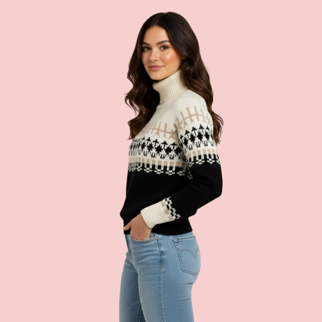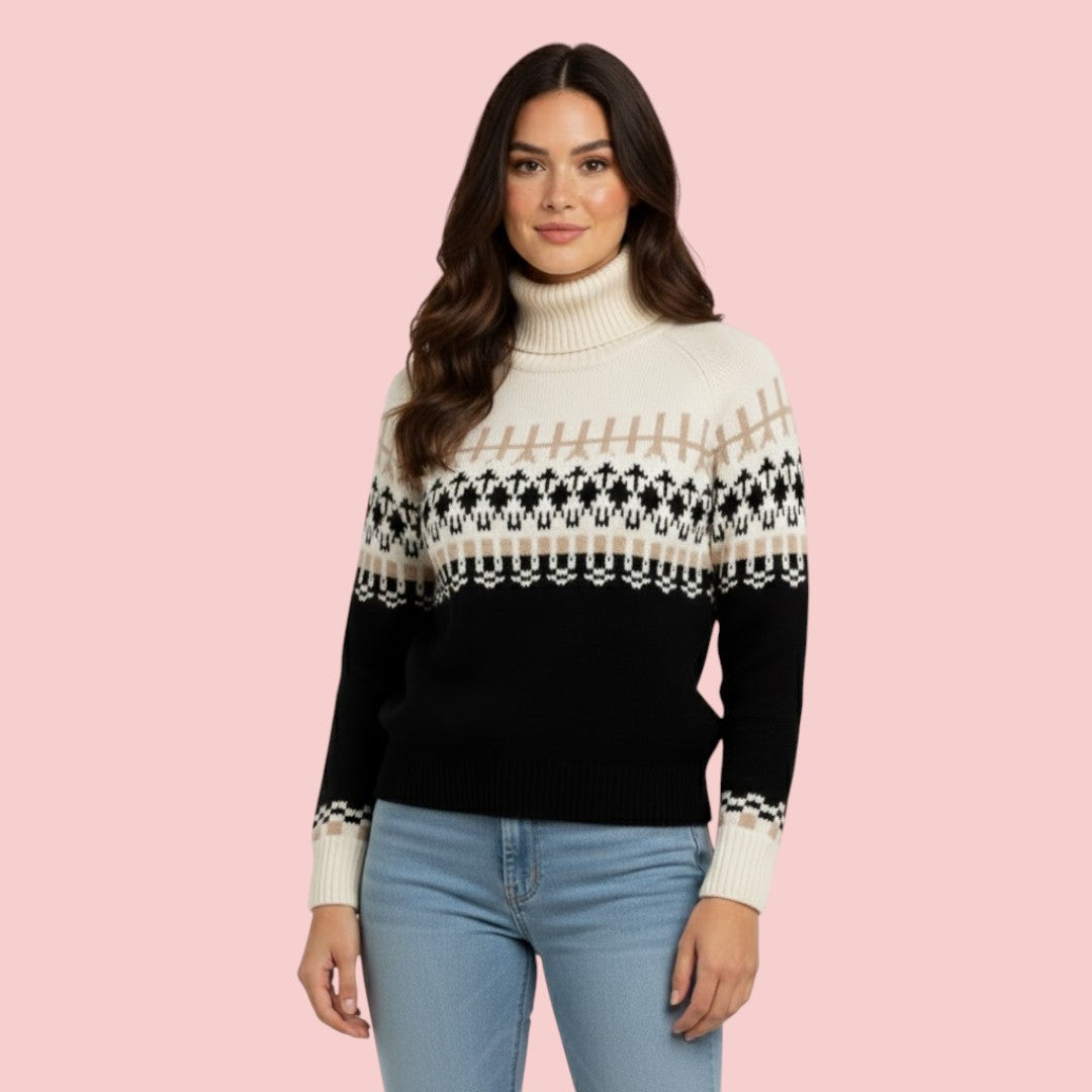 Stella | Zwart-witte Coltrui met Noors Design en Lange Mouwen voor Dames