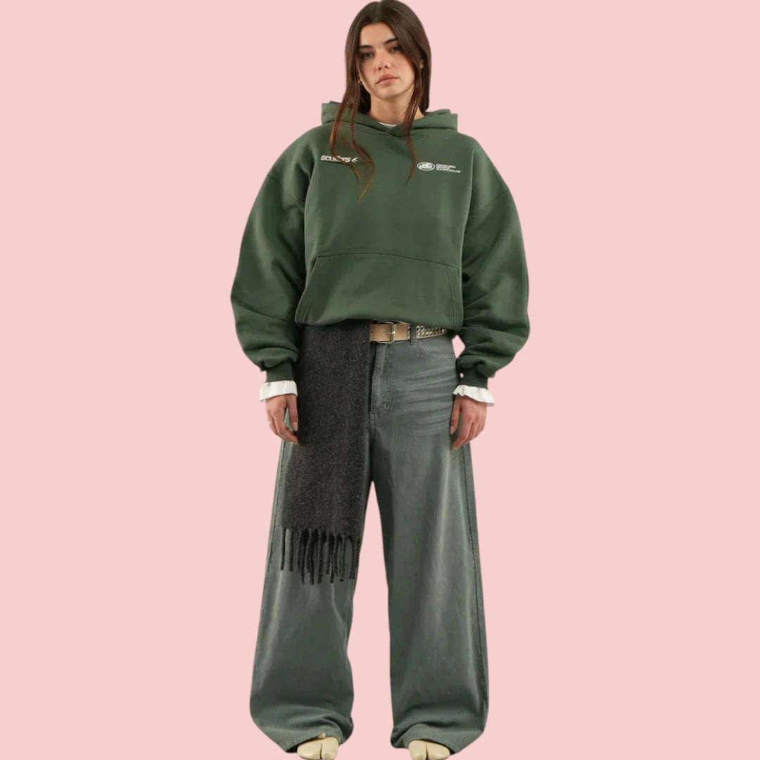 Deze dameshoodie met capuchon heeft een losse pasvorm en een subtiele print op de rug. De elastische boorden helpen de vorm te behouden, terwijl de kangoeroezak extra functionaliteit biedt. Geschikt voor dagelijks gebruik en te combineren met diverse kledingstijlen.