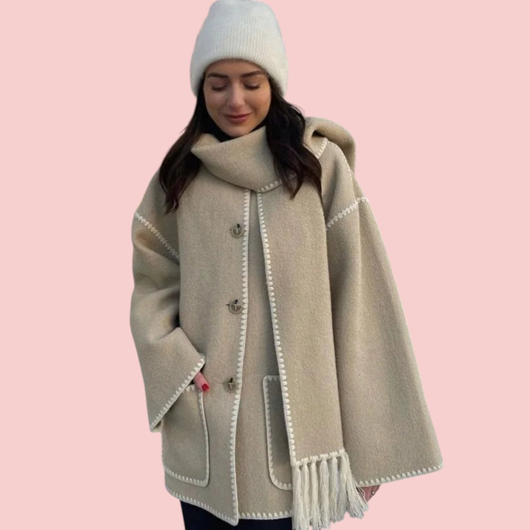 Caroline | Lange Wolmix Jas Met Reverskraag Voor Dames