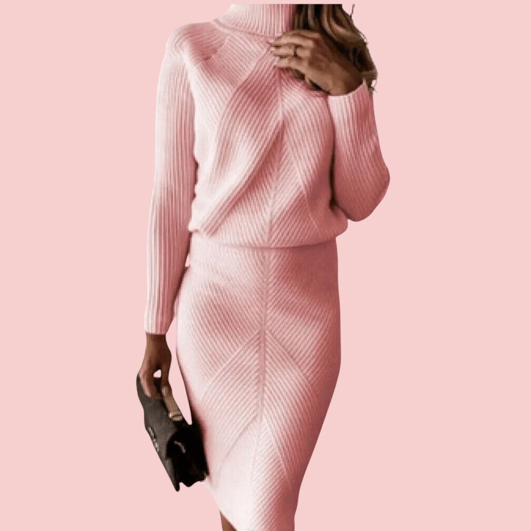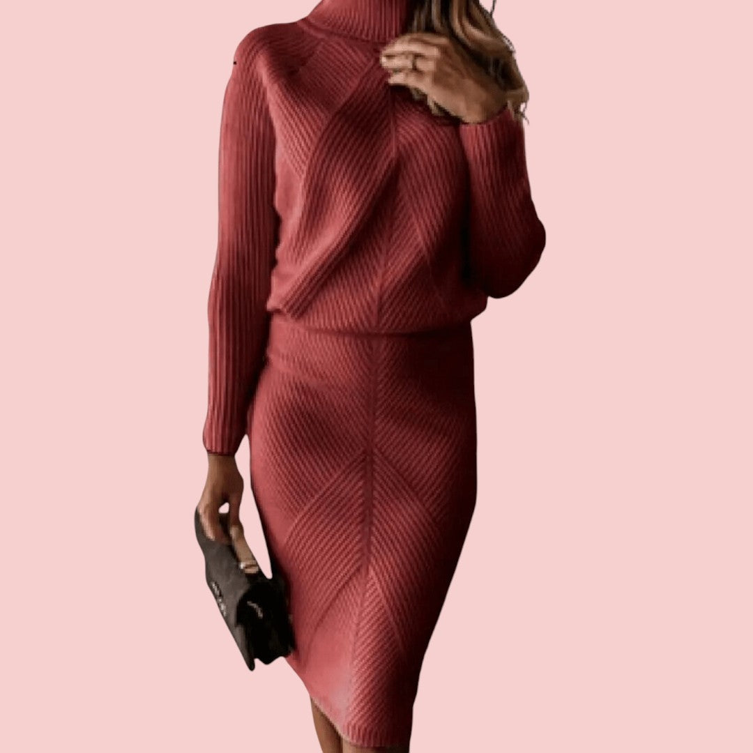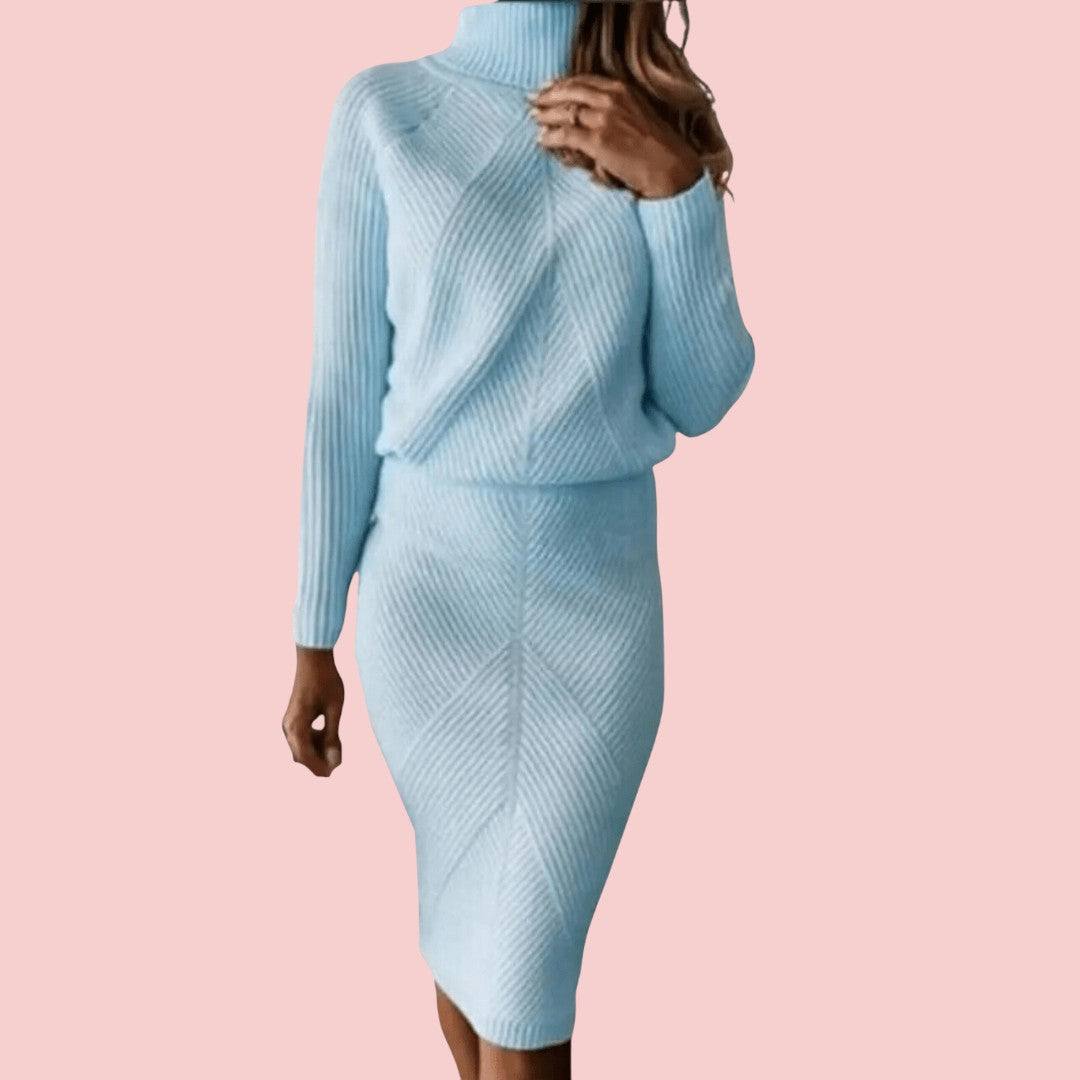 Emily | Gebreide Set Met Coltrui En Aangesloten Rok Voor Dames